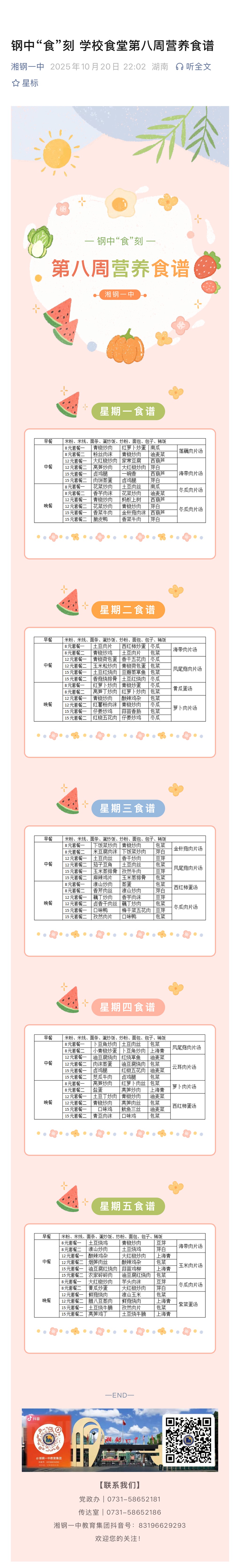 钢中“食”刻 学校食堂第八周营养食谱