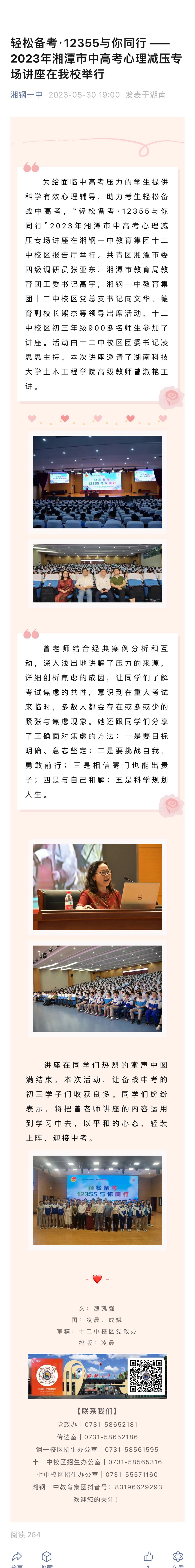 轻松备考·12355与你同行 ——2023年湘潭市中高考心理减压专场讲座在我校举行
