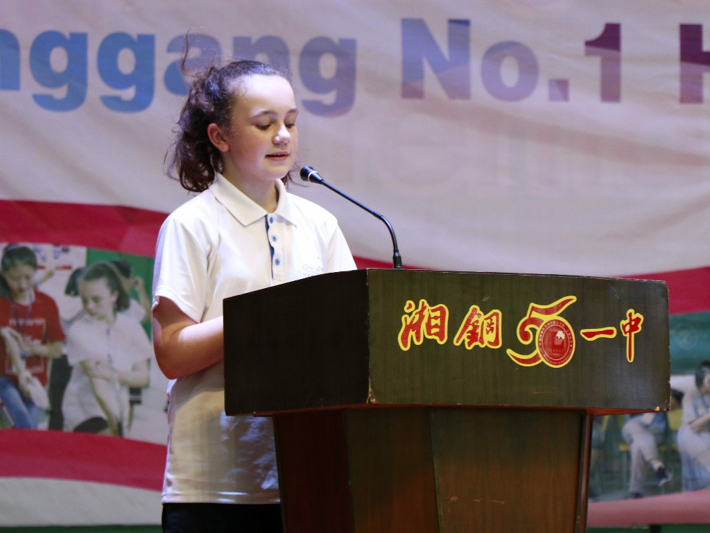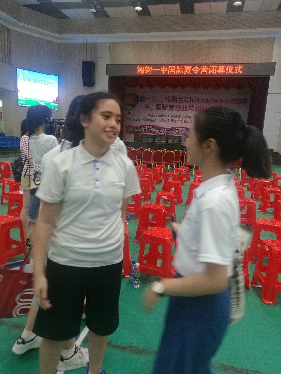 互动交流一个星期时间过得很快,中外师生们在国际营湘钢一中营地结下深厚的友谊。新西兰基督城彻斯纳伍德中学副校长Ms. Iva 表示:“上周六,来到这个学校和城市,我们是游客:今天下午,离开这个学校和城市,我们是你们的朋友和同事。我们这次的经历永存,我们的友谊永存!”新西兰学生代表Amelia说:“我在这里结识到了许多的新朋友,我们相处地非常愉快,我相信,我们的友谊会天长地久。”湘钢一中学生代表赵砺行说:“在国际营里,我结交了许多新朋友,这里的老师们也都循循善诱,活动精彩纷呈,课程趣味横生,但现在是说‘谢谢’与‘再见’的时候了。虽然我们彼此之间非常不舍,但每一次分离都是为了更好的相聚。”
