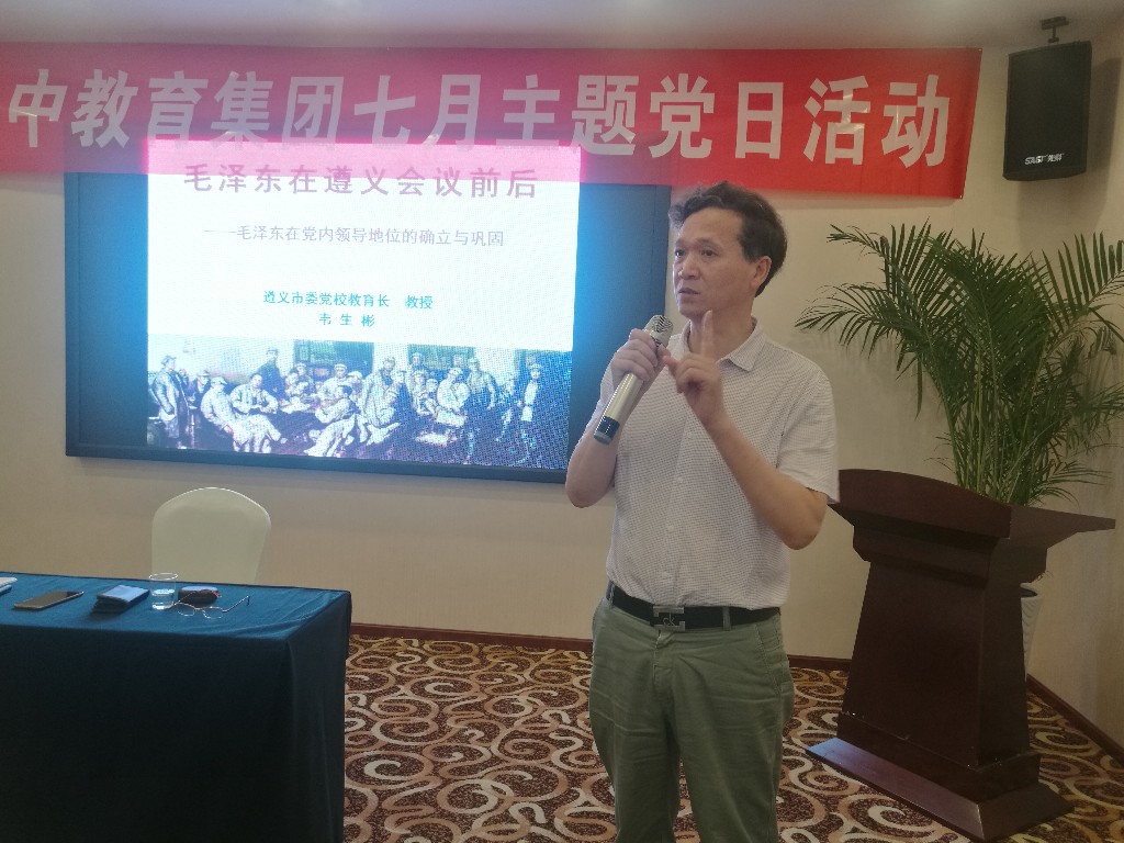 晚上,全体党员聆听了由遵义市委学校教育长韦生彬教授带来的党课《毛泽东在遵义会议前后——毛泽东在党内领导地位的确立与巩固》,韦教授生动形象的讲授让全体党员获益匪浅,大家对韦教授的讲课报以一阵阵掌声。