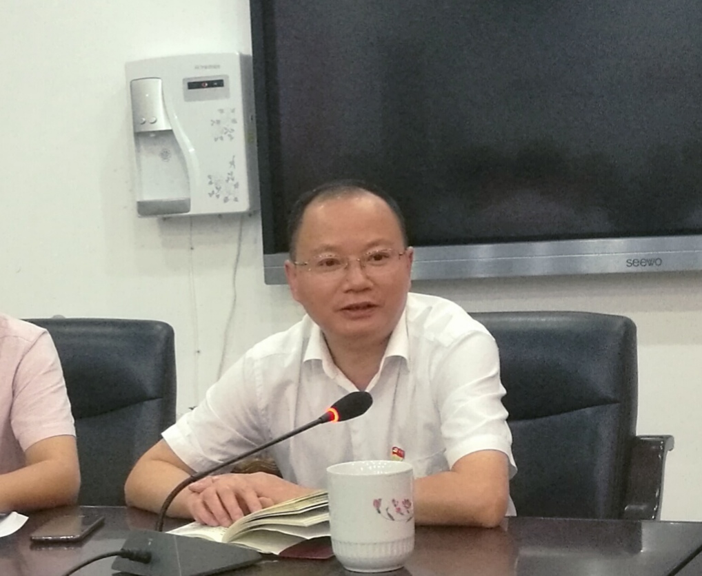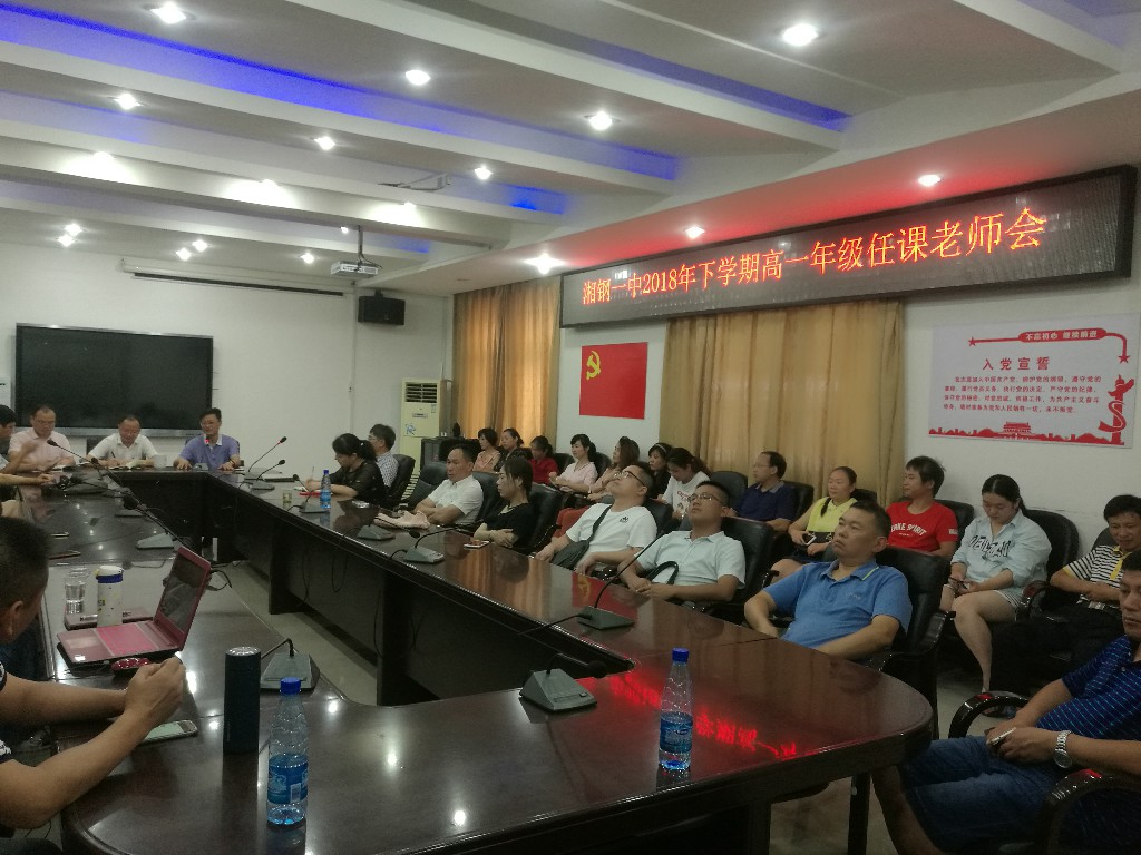 2018年8月24日上午,湘钢一中新高一全体任课老师齐聚南楼会议室,召开高一年级任课老师会。集团校长王敏、党委书记卢学农、教学副校长刘洁冰、纪委书记周炜、党政办主任江莉参加了会议,年级组长肖东安主持会议。