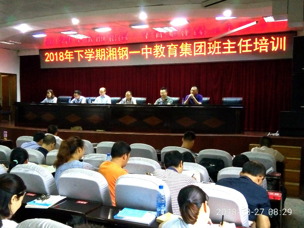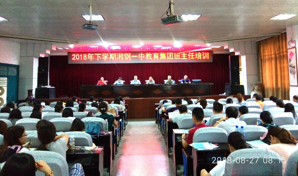 2018年8月27日上午,湘钢一中教育集团全体班主任齐聚北楼一会议室,召开下学期第一次班主任会议,与会领导有湘钢一中教育集团党委书记卢学农,校长助理王锦兵,安全科科长欧阳虎,学生科科长张劲,十二中校区学生部部长王兴波。此次会议由张劲科长主持。