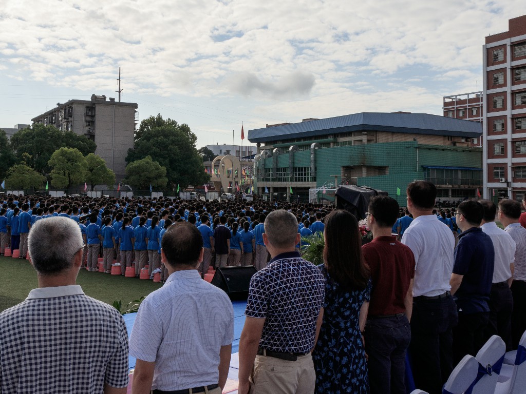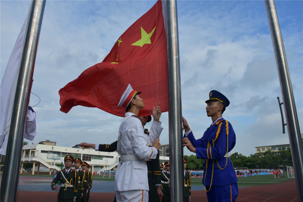 8:00整,典礼开始。在雄壮的国歌声中,在激扬的校歌声里,全体钢中人肃立在晨光中,注视着冉冉升起的国旗和校旗,虔心迎接新学期的到来。