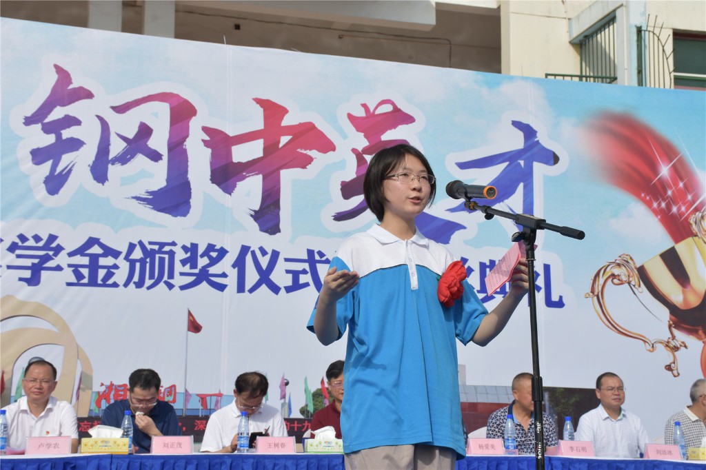 首届“钢中英才”奖教奖学金奖励了德教双馨的唐白如、谭水英、胡金科、李玉华、宋锦前、周勇、汪洋、陈江平、蒋周琪等9名老师;王溯之等六名优秀高三毕业生,他们以优异的成绩分别考取了北京大学等国内顶尖学府;以及高二年级邱一峰等、高三年级姚锐等20名优秀学生。全体师生将以受表彰师生为榜样,奋斗精进,取得更优异的成绩。