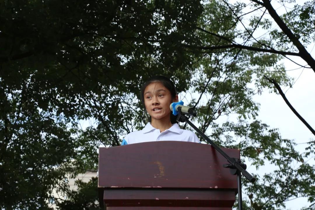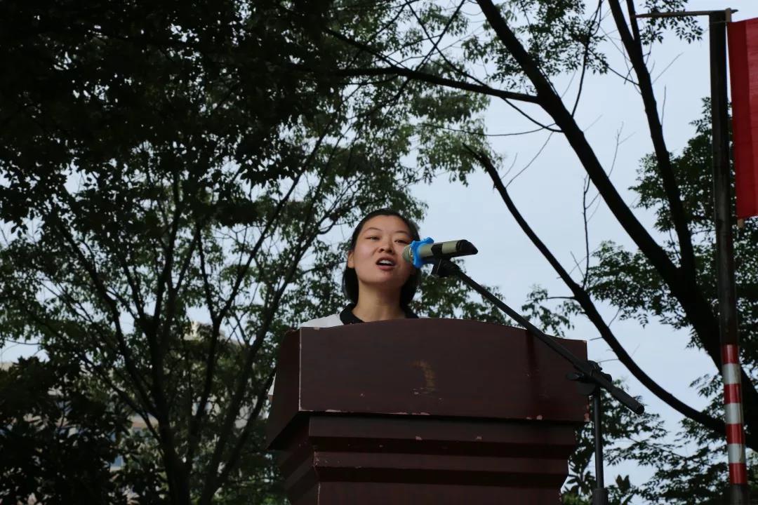 随后,新教师代表蒋芳老师发言,她说昨日还是钢中学生,今天已成钢中老师的她感到无比自豪和激动。她表示将用一颗真挚的心,以勤学、勤问、勤看、勤听的习惯来实现自己的教育理想。1714班彭熙雯代表全体学生表态要做一个乐观、勇敢、有理想、学会思考的中学生,并且已准备好一颗进取之心扬帆起航。