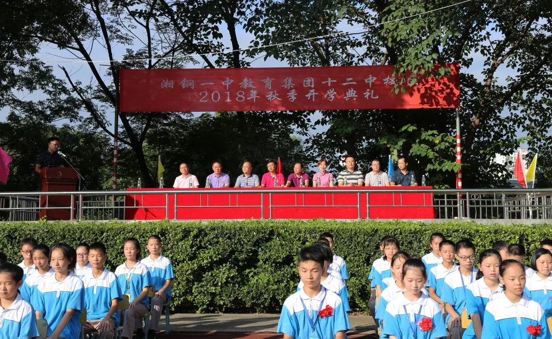 2018年9月2日,风轻云淡,秋色宜人,湘钢一中教育集团十二中校区全体师生齐聚操场,举行2018年秋季开学典礼。出席此次典礼的嘉宾有湘钢一中教育集团校长王敏、党委书记卢学农、副校长刘洁冰、校长助理王锦兵,十二中校区校长王军、党总支书记向文华、工会主席谭小刚、督学王强及家长代表陈柳湘。典礼由十二中校区学生部部长王兴波主持。