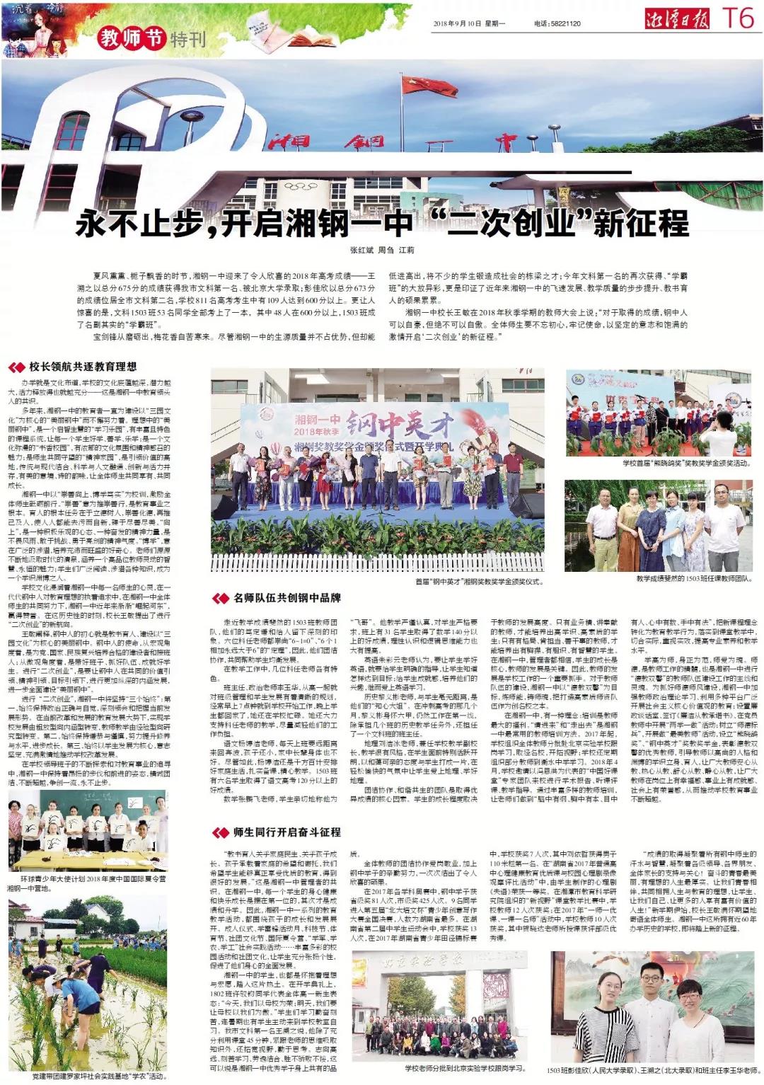 在学校领导班子的不断探索和对教育事业的追寻中,湘钢一中保持着昂扬的步伐和前进的姿态,精诚团结、不断超越,争创一流、永不止步。