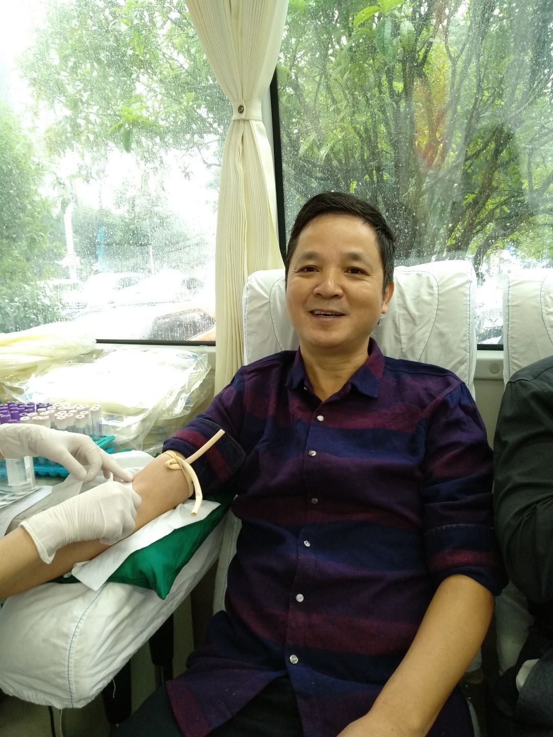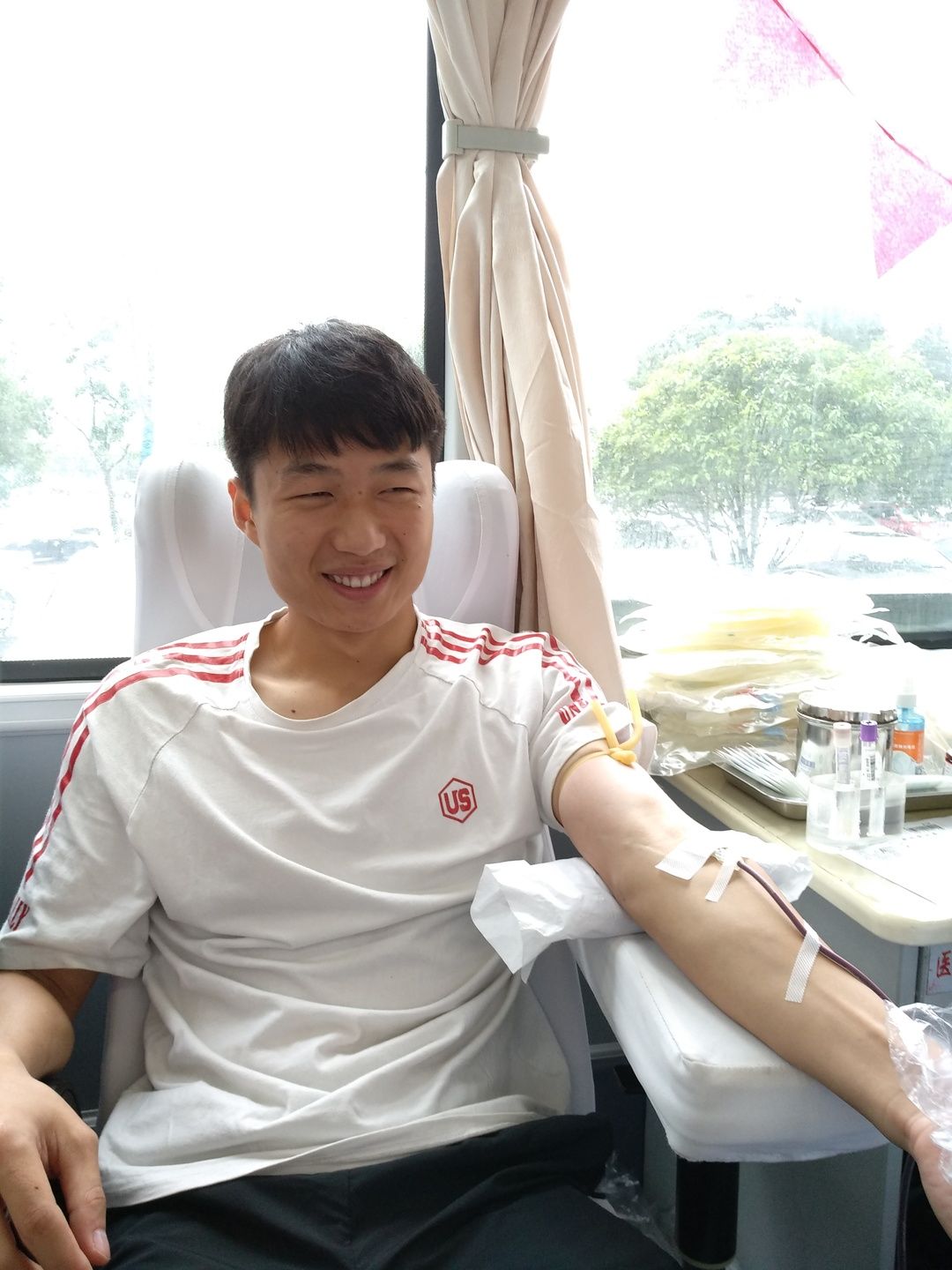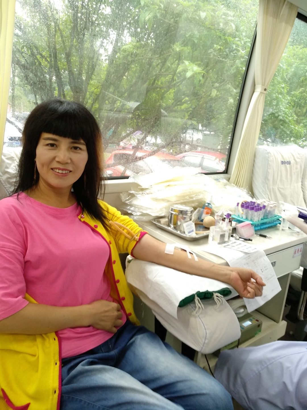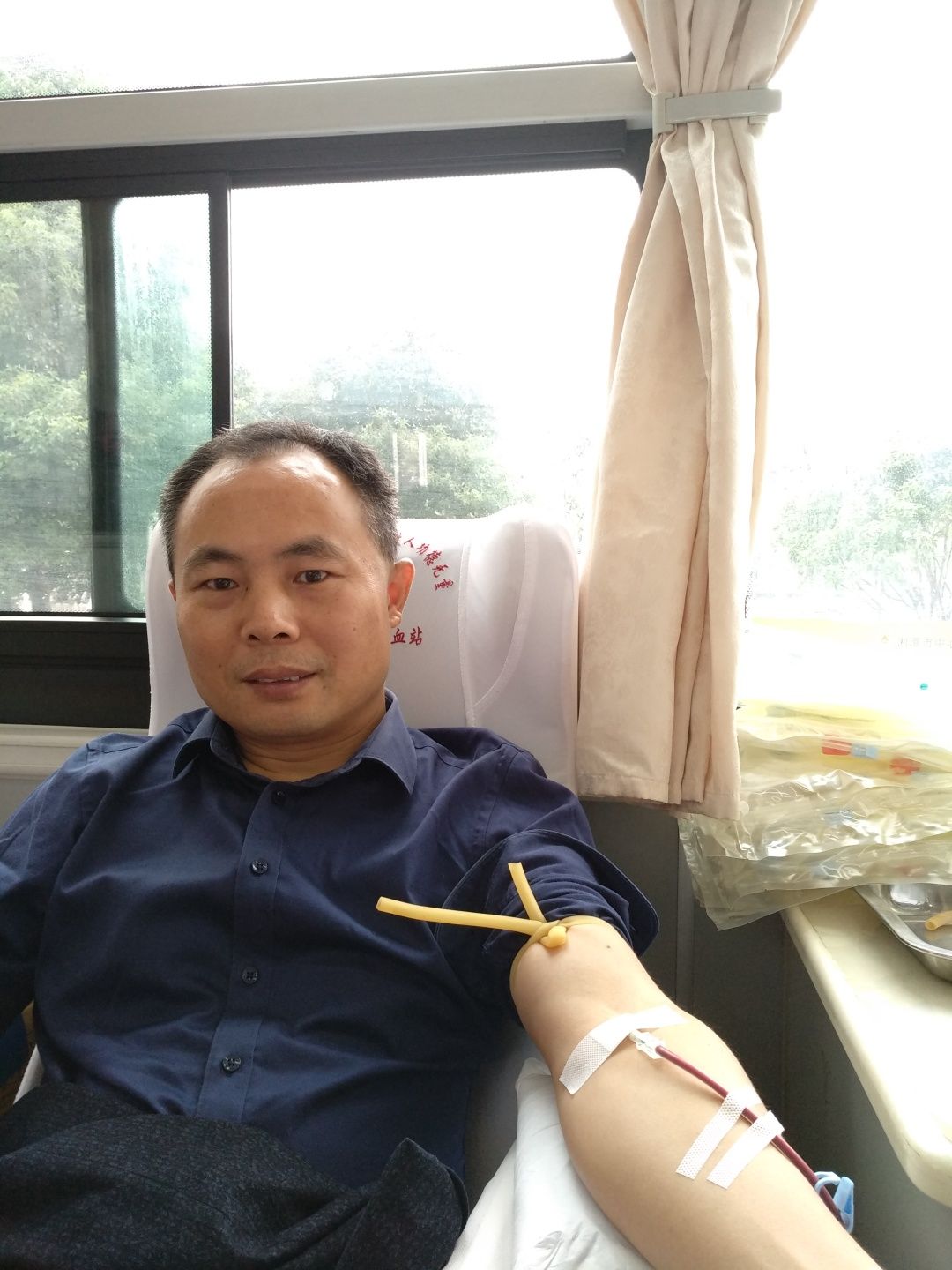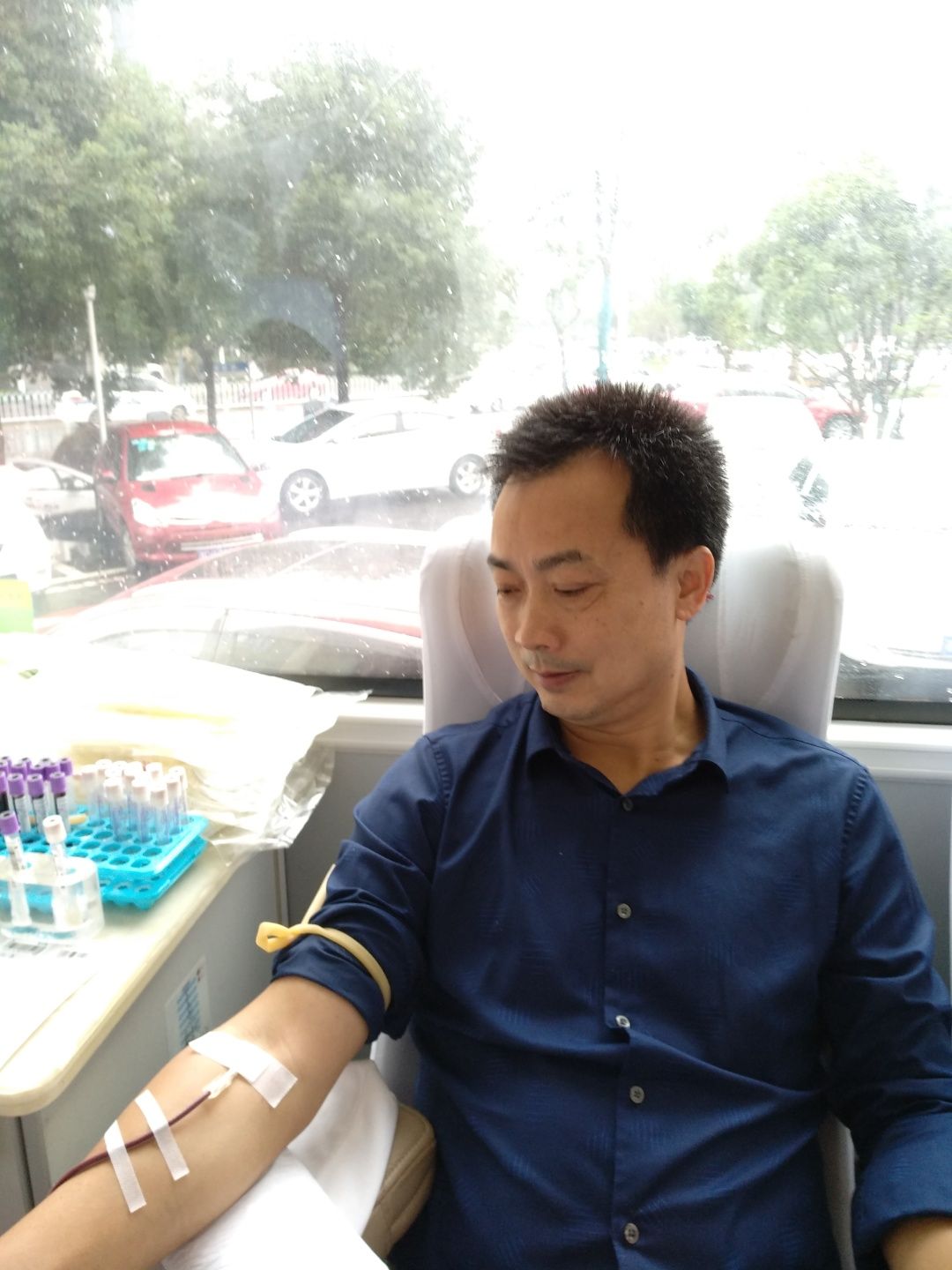 9月27日上午,在市教育局前坪,从飒飒秋雨中前来报名献血的湘钢一中老师们早早来到献血等候区,在中心血站工作人员的指引下,大家有条不紊填表、体检、化验、等候、抽血、休息,所有流程都在医护工作人员的要求和老师们的配合下井然有序地进行。