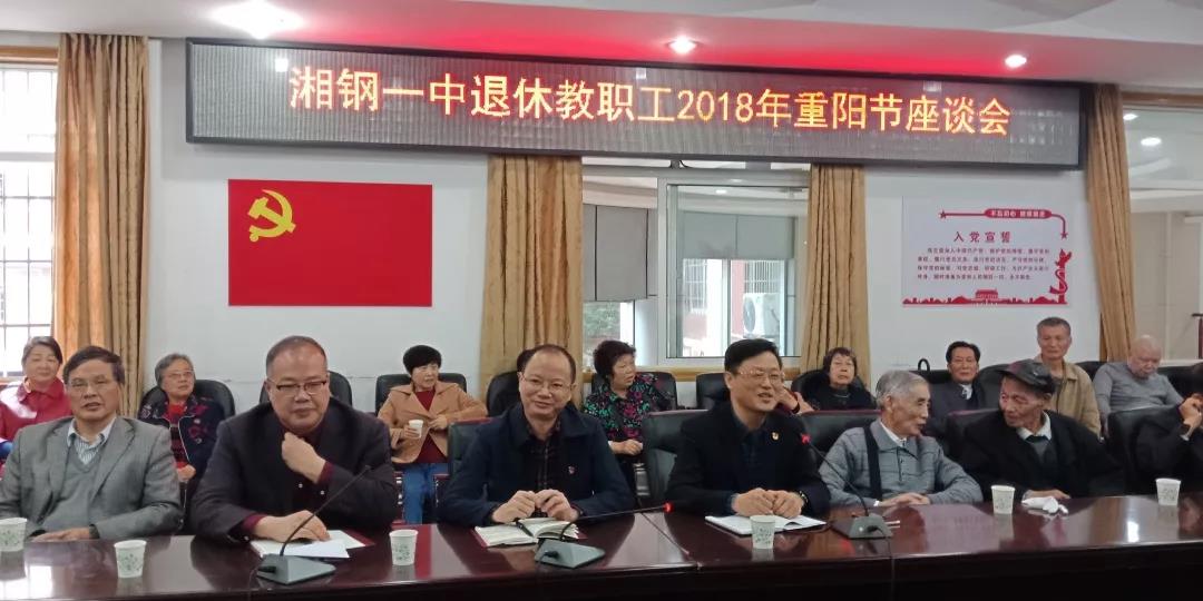 春去夏逝秋又至,丹桂飘香沁钢中。2018年10月17日上午,湘钢一中校长王敏、党委书记卢学农、工会副主席胡志文与部分退休老教师们一起在学校南楼会议室共话教育、欢度重阳!