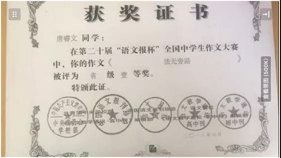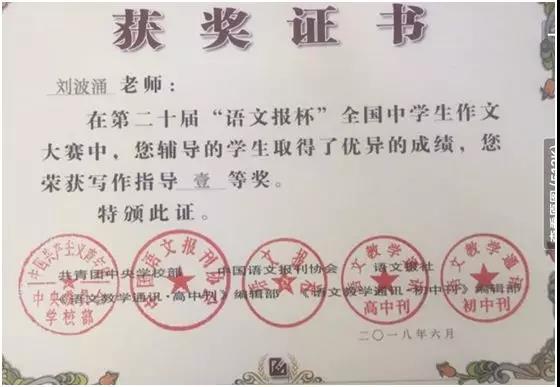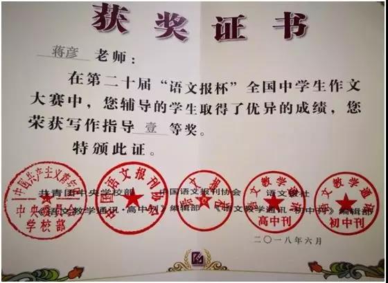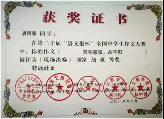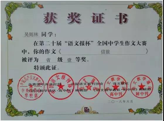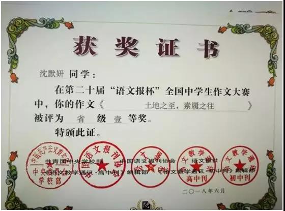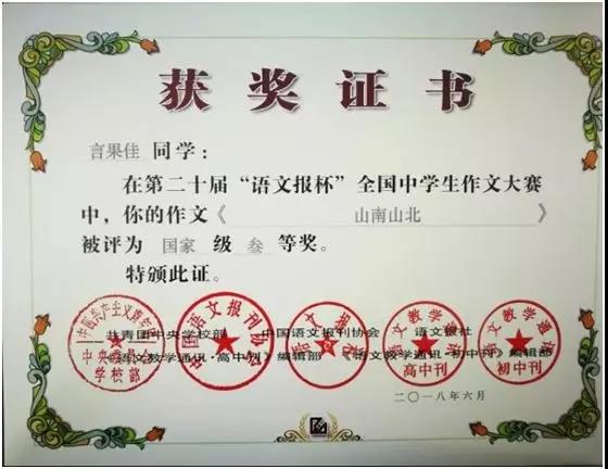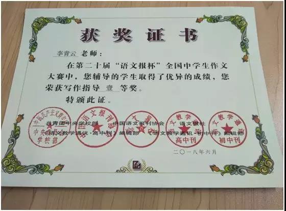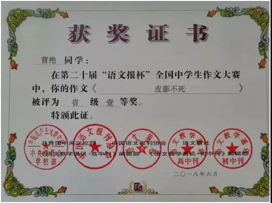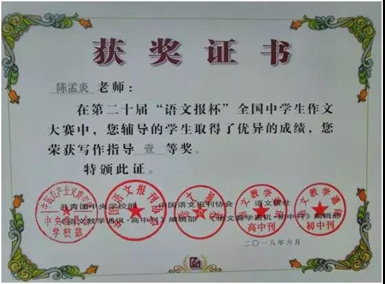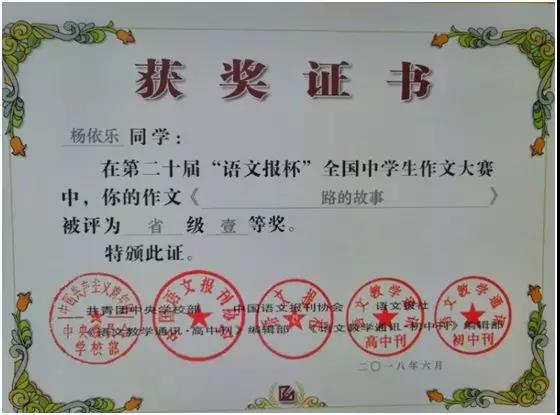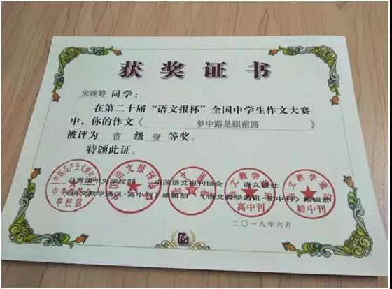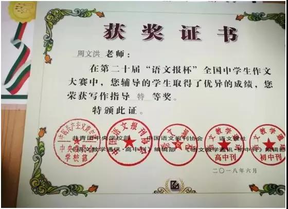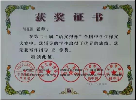 第二十届“语文报杯”中南赛区一等奖