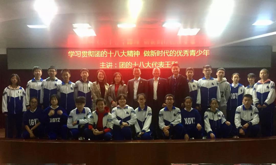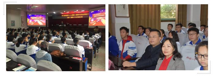 2018年10月19日下午,团的十八大代表、共青团湘潭市委书记王利来到湘钢一中教育集团,给两百多名学生代表做了以“学习贯彻团的十八大精神,做新时代的优秀青少年”为主题的讲座。出席本次讲座的还有团市委宣传部部长胡谅、湘钢一中教育集团党委书记卢学农、纪委书记周炜、德育副校长王锦兵,以及学校的教工团员代表们。讲座由卢学农书记主持。