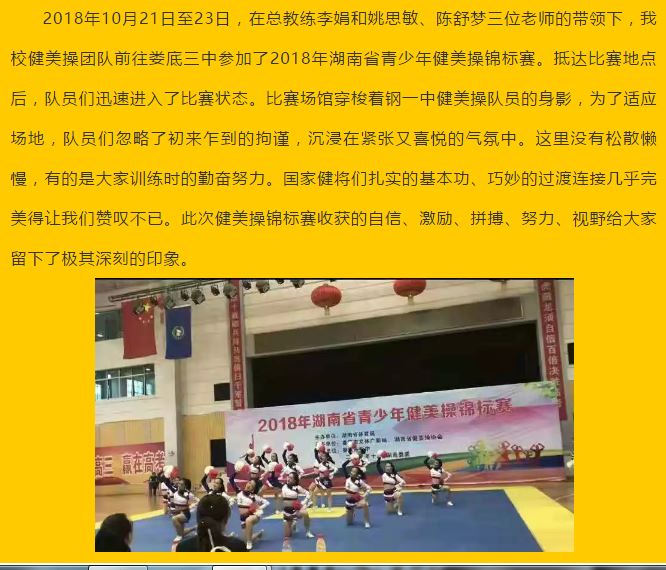 舞青春活力 展钢中魅力 ——湘钢一中健美操队在2018年湖南省青少年健美操锦标赛中再创佳绩