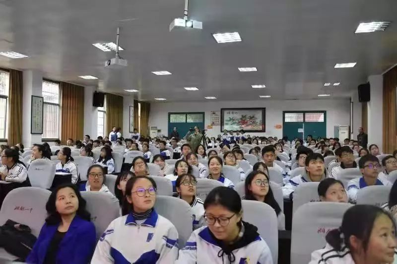 在现场聆听的有高二1701班、1702班、1703班、1717班以及高三1603班的同学们。第二节课下课后,同学们如潮水般涌入大会议室,霎时间,座无虚席。天空中飘着丝丝细雨,天气有些寒意,同学们的热情却丝毫未减——人人脸上都洋溢着欢愉的笑容,眼中闪烁着兴奋的光芒。