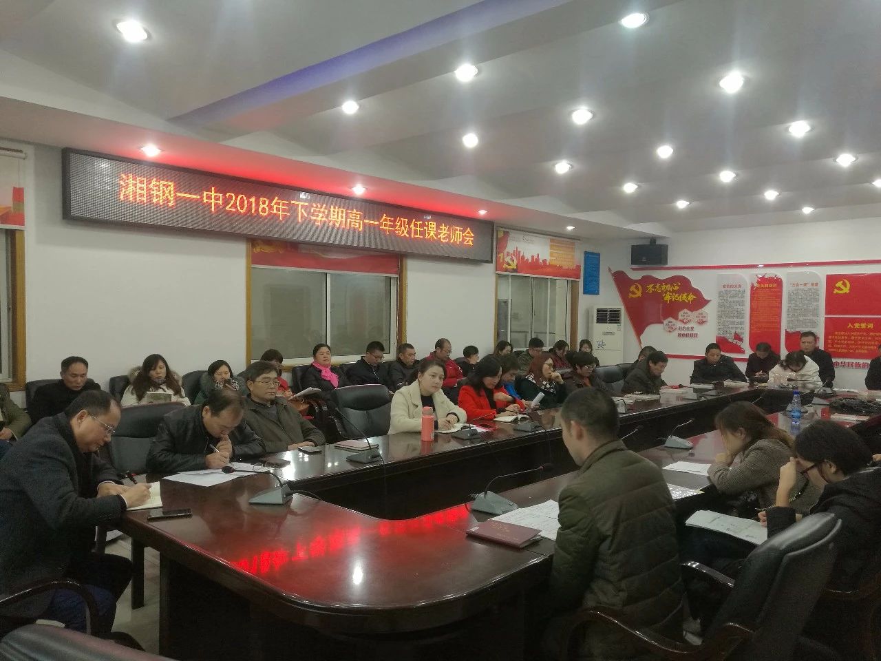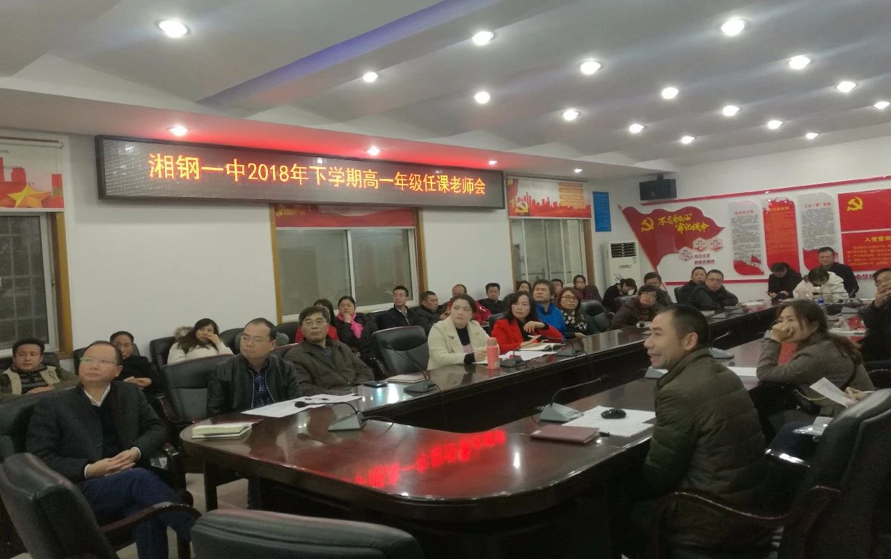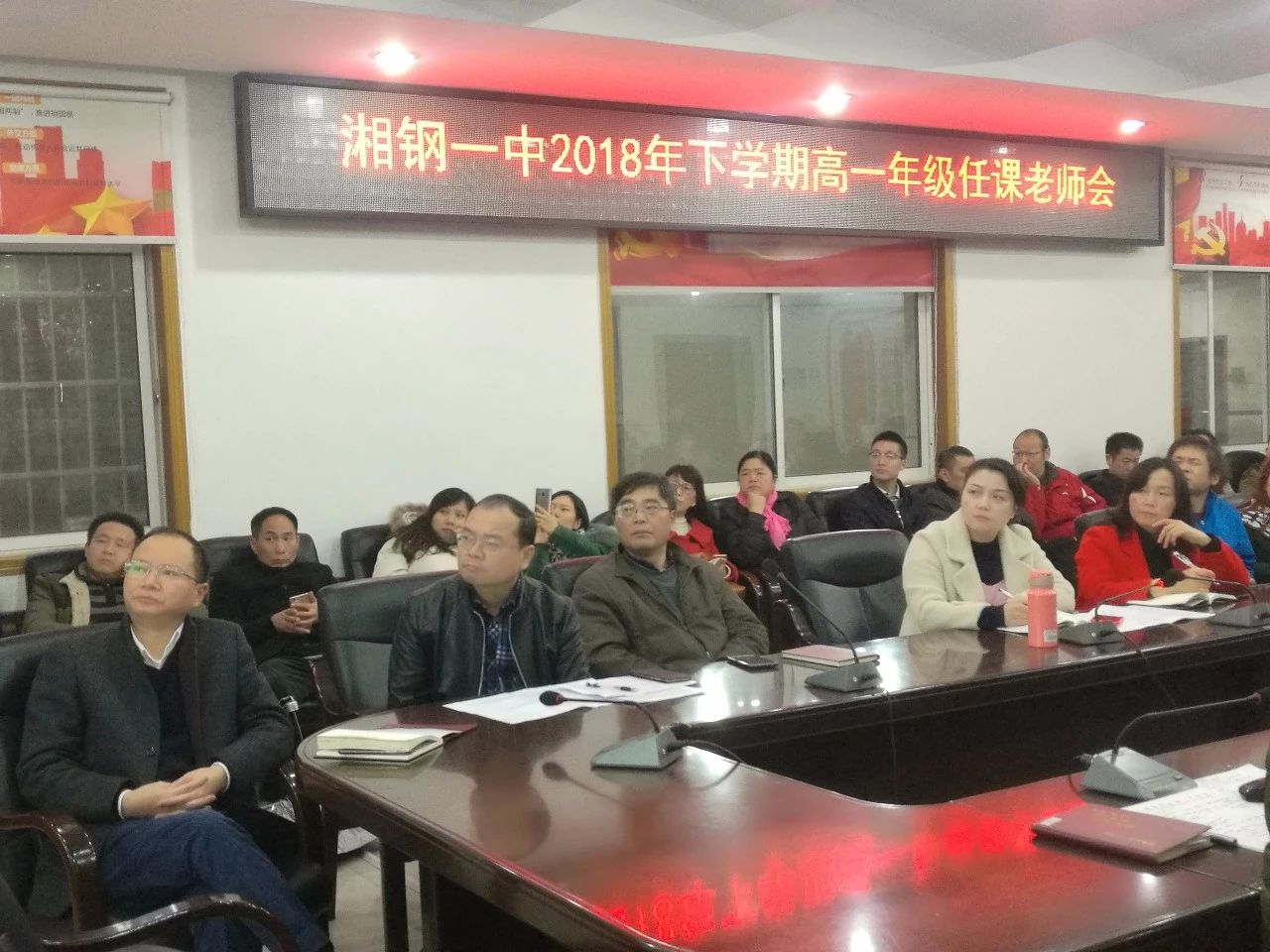 冬雨绵绵,寒风萧萧。2018年11月20日下午,湘钢一中高一年级全体老师齐聚在南楼会议室,共商高一年级教育教学事宜。校党委书记、高一年级蹲点领导卢学农、教学副校长刘洁冰、纪委书记周炜、教务科长宋锦前、高一年级组长肖东安参加会议,会议由党政办主任江莉主持。