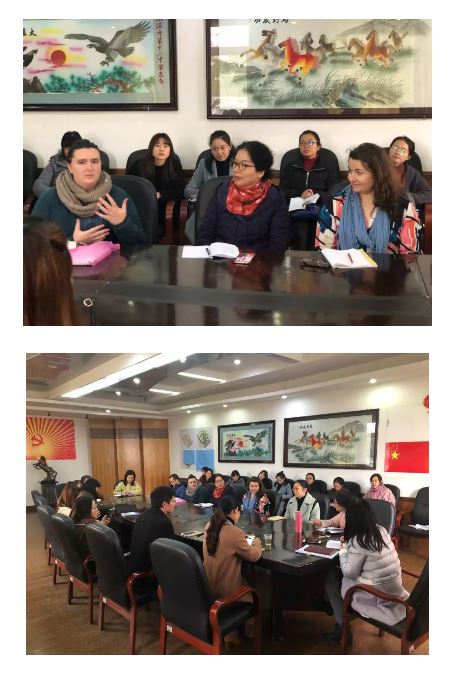 为了促进教学教研和国际文化交流,我校十二中校区于11月21日组织了“外教口语公开课”教研系列活动。参加此次教研活动的有十二中校区课程部部长彭冬莲、外交办柳疆玲老师、两位外教Mariah老师和Gabby老师及初中全体英语教师,本次活动由柳疆玲老师全程指导安排。