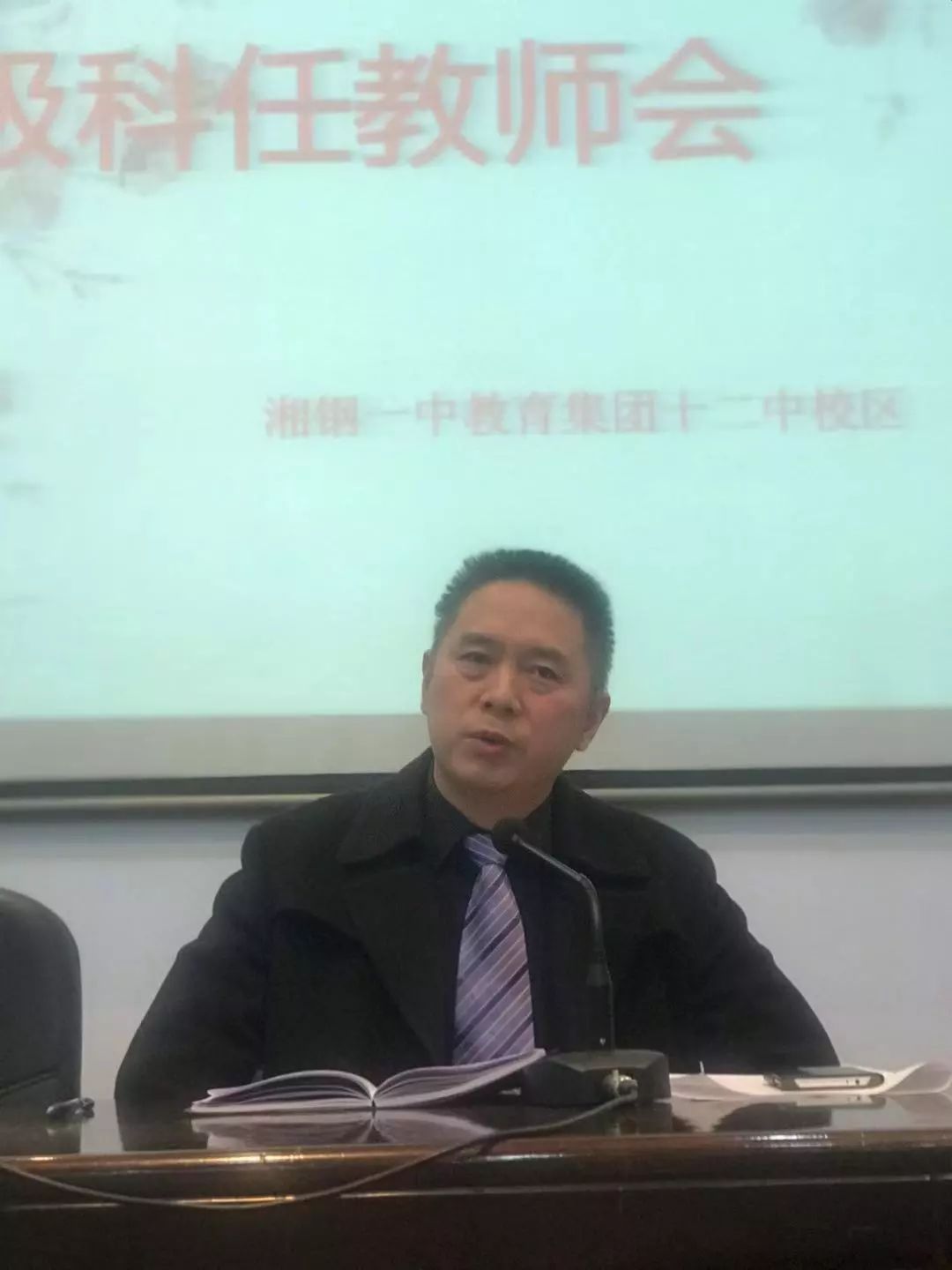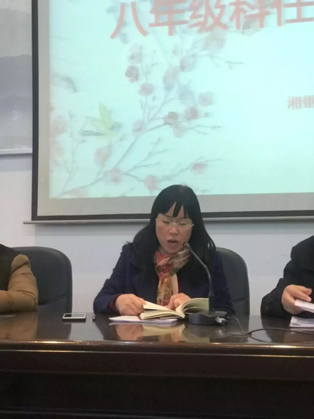 11月23日,时维初冬,却暖阳如新。下午四点半,湘钢一中教育集团十二中校区八年级科任教师会议在大会议室召开。湘钢一中教育集团十二中校区党总支书记向文华、课程部部长彭冬莲、后勤部部长刘满林莅临指导,会议由年级组长汪洋主持。