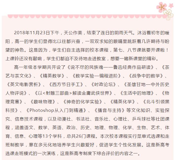 精彩纷呈彰特色,兴趣引领促成长 ——湘钢一中高一年级校本课程开课纪实