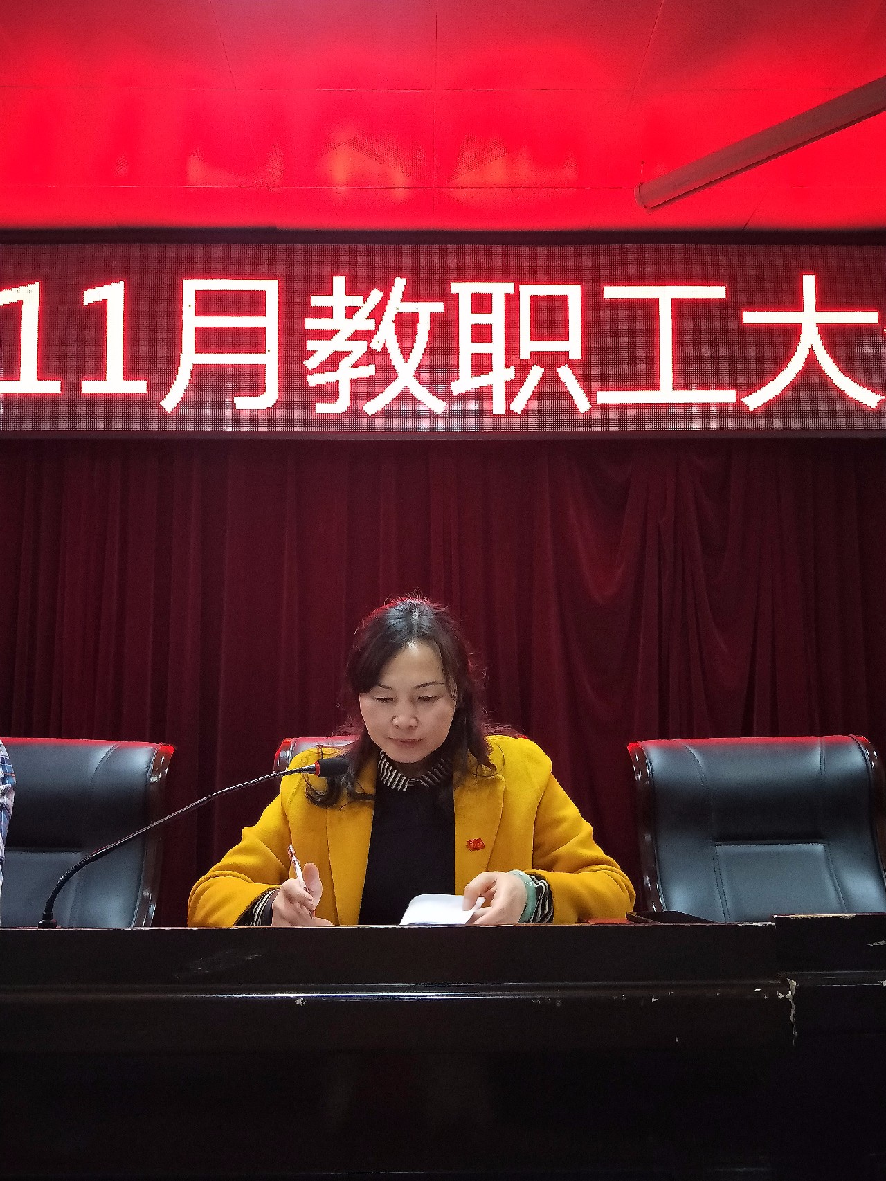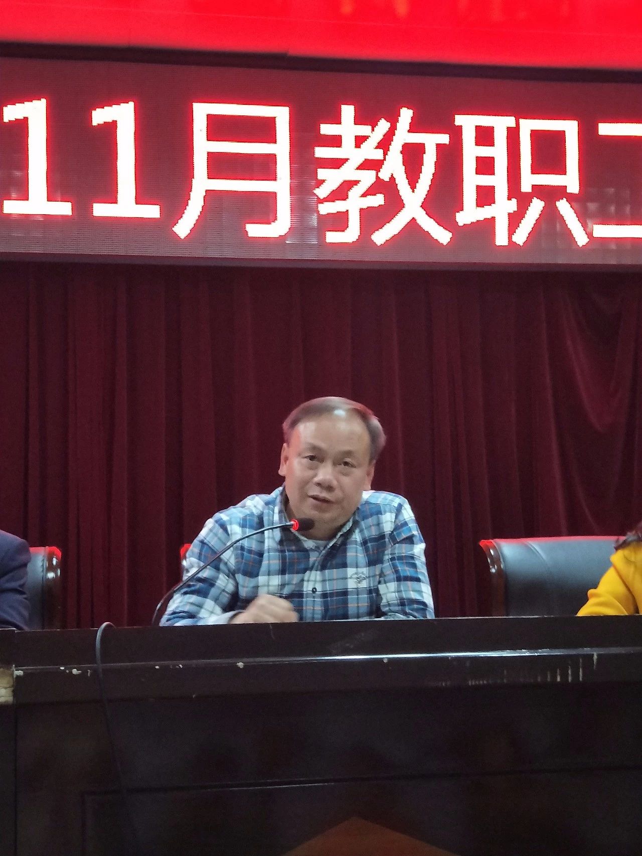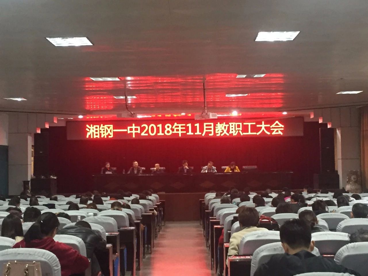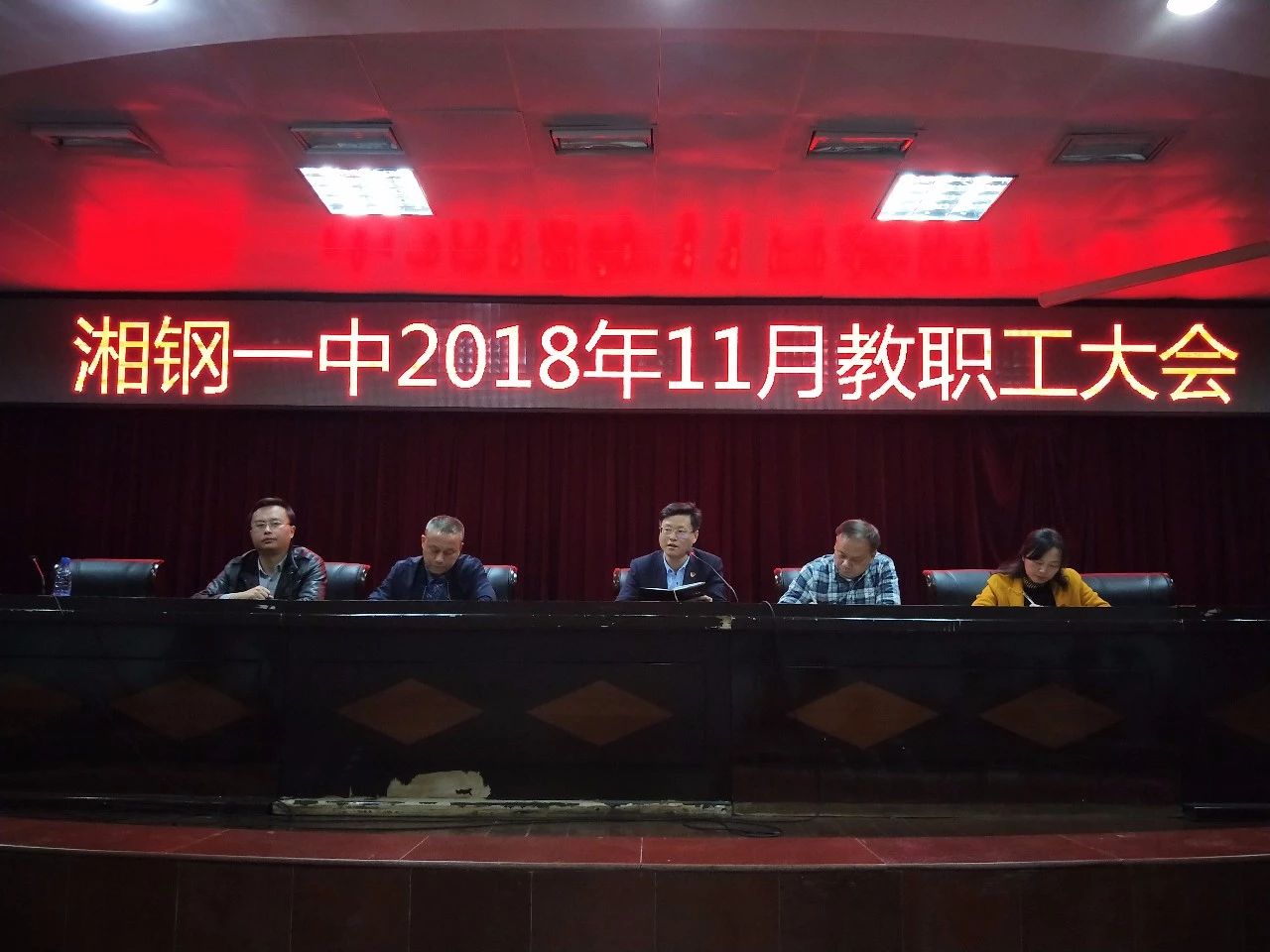 11月30日下午,湘钢一中教育集团本部全体教职工携冬日暖阳齐聚北楼会议室,召开湘钢一中2018年11月教职工大会,会议由工会主席陶继本主持。