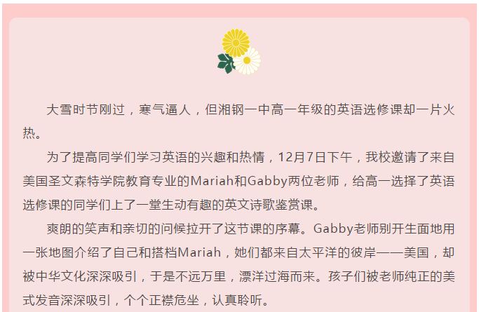 诗意氤氲 其乐融融——湘钢一中高一英语选修诗歌鉴赏课纪实