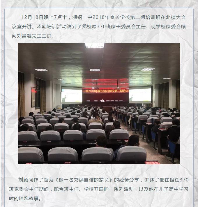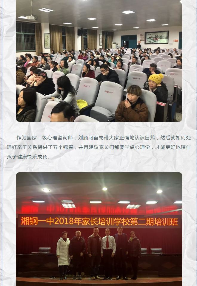 学点心理学,做一名充满自信的家长——记湘钢一中2018年家长学校第二期培训班活动