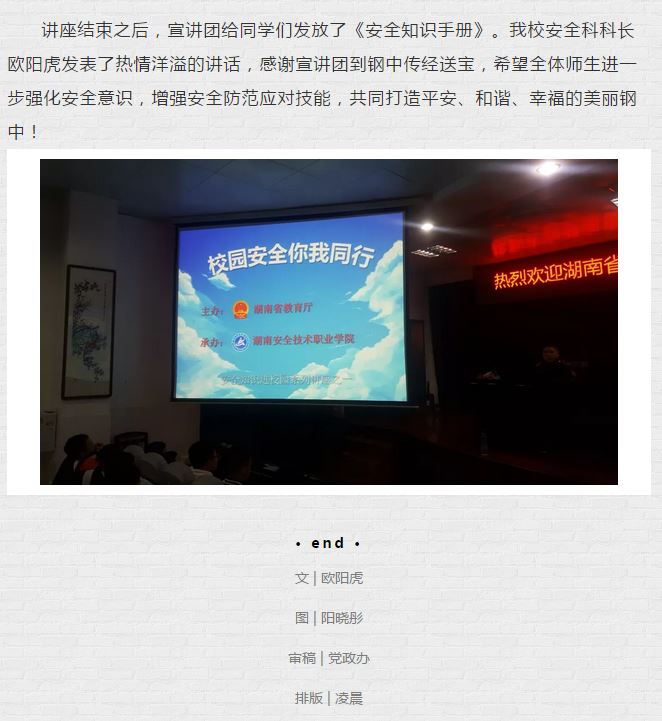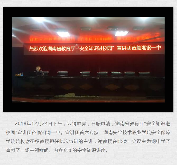 系统宣讲安全知识,着力构建平安校园 ——湖南省教育厅“安全知识进校园”宣讲团莅临湘钢一中传经送宝