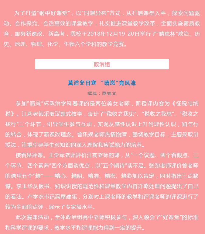 冬日赏“晴岚” 唤得春意浓——湘钢一中2018年下学期 “晴岚杯”教学竞赛侧记