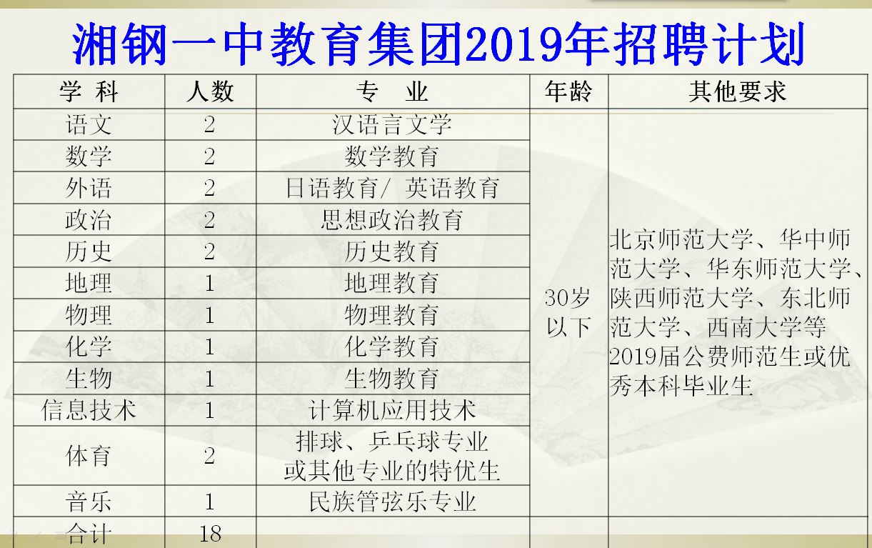 崇善向上 博学笃实 湘钢一中欢迎您!——2019年招聘计划