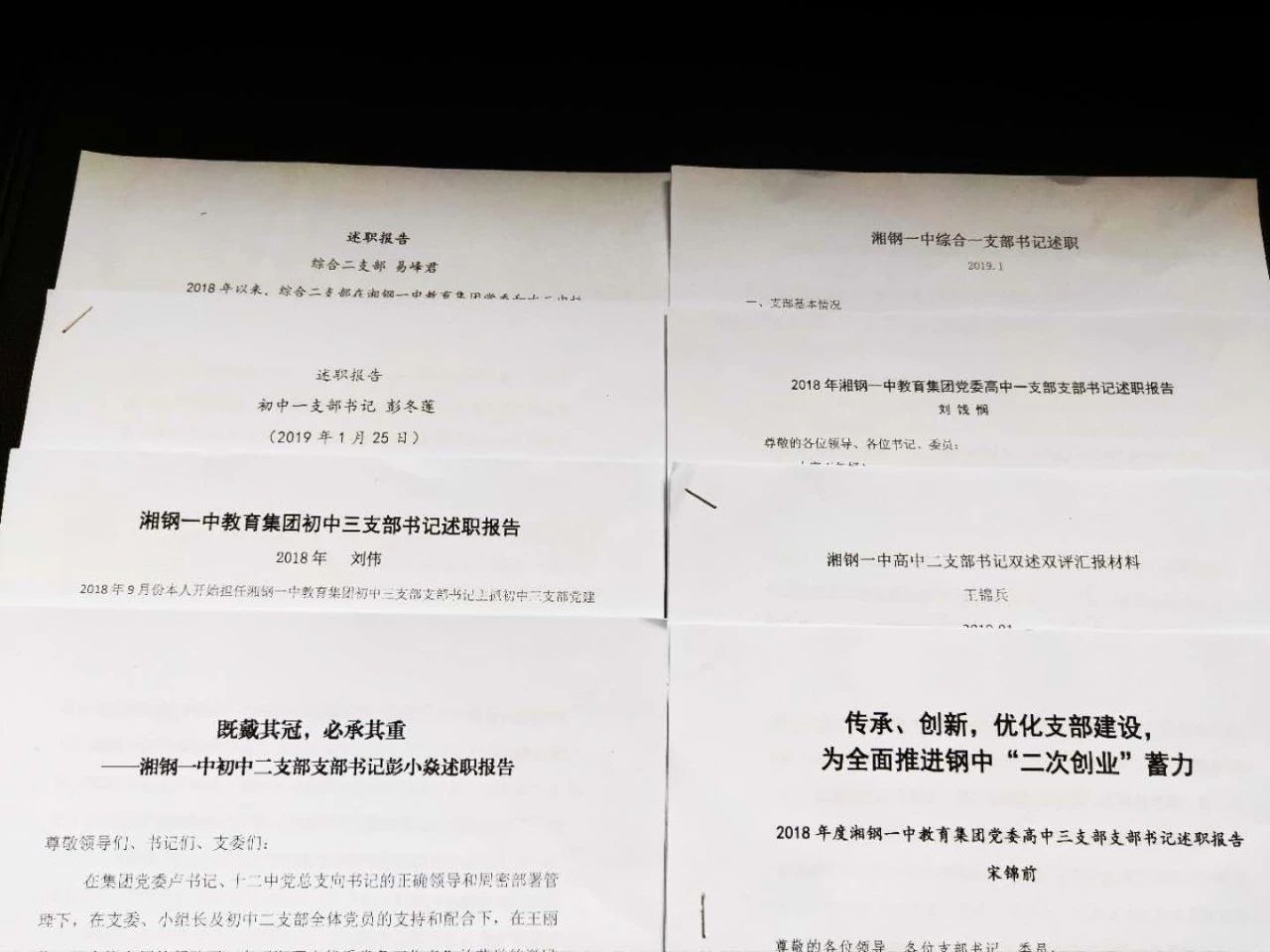 述职中,8位书记结合本支部工作实际,总结回顾了一年来党建工作开展情况,展示了各支部亮点和特色,如:综合一支部充分利用信息化平台创新学习模式,综合二支部以问题为导向确定每月的主题党日活动内容,高中二支部积极推进党建带团建丰富德育活动内容,有的支部将活动场所放到了档案馆、纪念馆、实践基地等。同时,8位书记也深刻反思了工作中的不足和存在的问题,并提出了2019年工作思路。