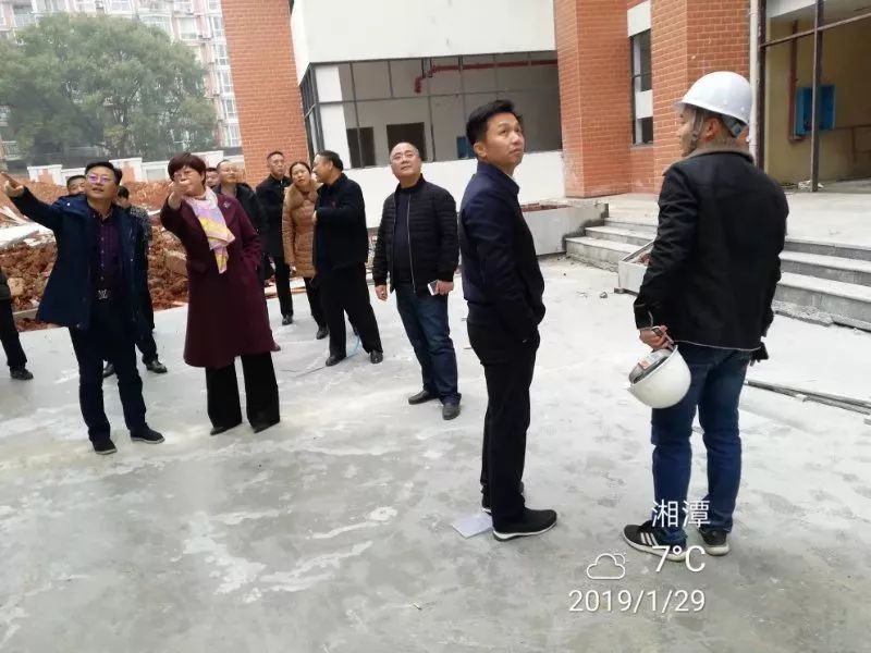 2019年1月29日,时值农历小年,腊月将尽,春意已临。下午2点30分,湘潭市人民政府副市长刘永珍、市教育局党委副书记谢兰焰、市教育局副局长齐湘雄、市财政局教科文科长雷晖、市教育局计财科科长黄大勇、教技室主任何光虎、建管站站长沈旭日等一行人到湘钢一中教育集团十二中校区对改扩建项目建设进行调研,湘钢一中教育集团校长王敏、党委书记卢学农、纪委书记周炜、十二中校区校长王军、党总支书记向文华及全体行政领导陪同调研。