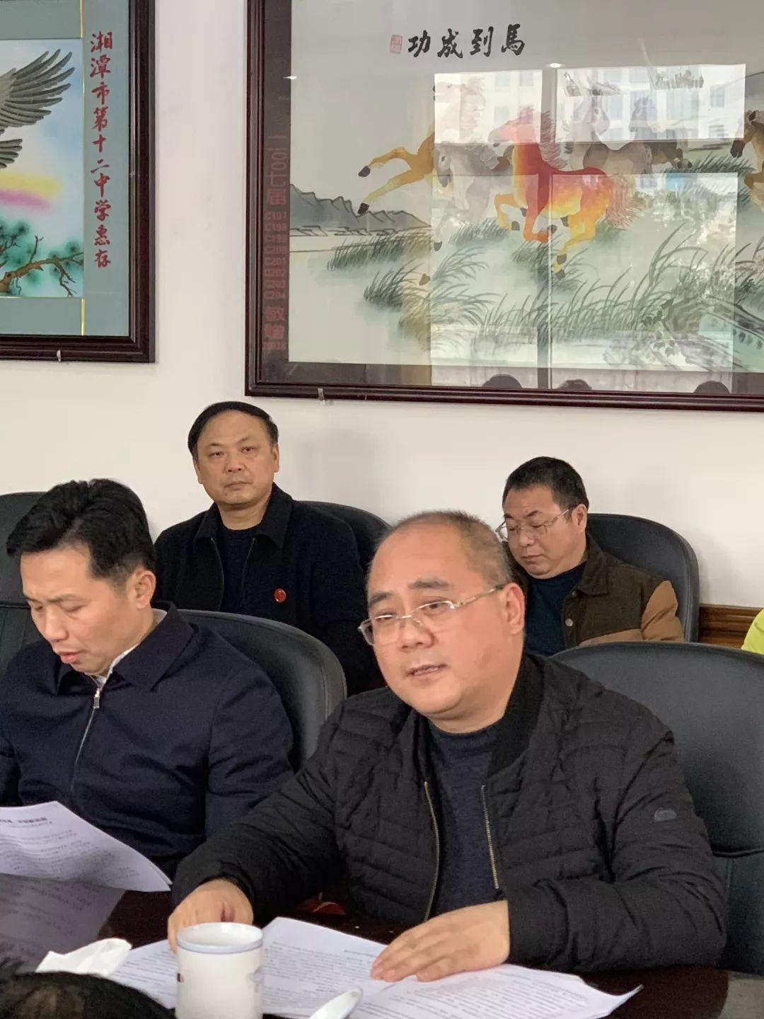 调研的第二站是在学校小会议室召开调研座谈会。在座谈会上,王军校长首先对十二中校区改扩建项目建设情况进行了汇报。王校长从项目的总体规划、各方所作努力、工程进展情况、存在的困难等四个方面进行了汇报,他最后说到:“我们坚信十二中校区工程项目建设是一件有利于湘潭教育发展、惠及湘潭人民的大事,两校区融合后,十二中校区发展快,来势好,相信工程建设能持续得到各方支持,大家凝心汇智、攻坚克难,定能圆满完成,开创全新局面!”