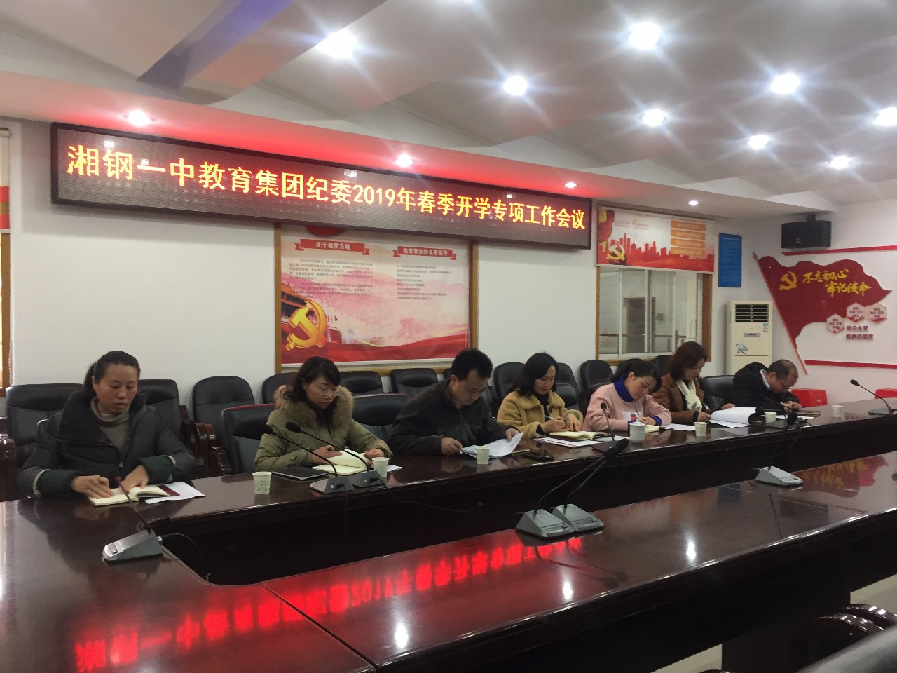 我校纪律检查委员会于2019年2月26日下午在南楼会议室召开湘钢一中教育集团2019年春季开学教育行风专项整治工作会议,与会人员有纪委书记周炜,纪检委员谭小刚、江莉、张劲、文劲、彭小焱,纪委干事王丽萍,会议由周炜书记主持。