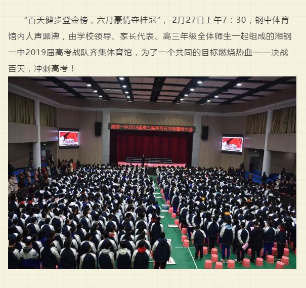 鹰击天风壮,鹏飞海浪春——湘钢一中隆重举行2019届高考百日誓师大会