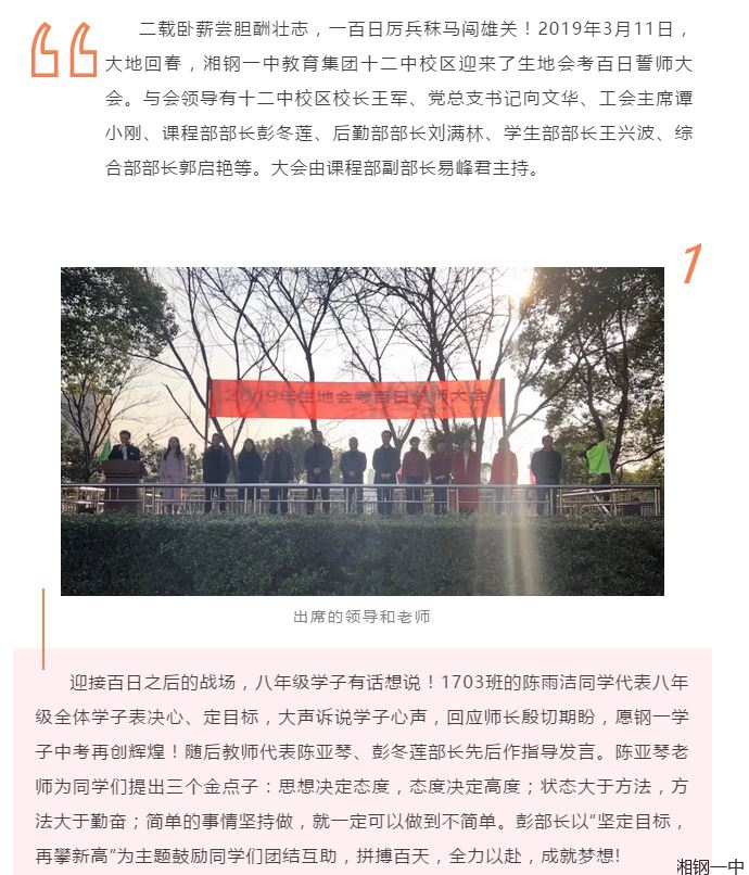 冲刺会考无问西东,誓师百日不负芳华——记湘钢一中教育集团十二中校区八年级生地会考百日誓师动员大会
