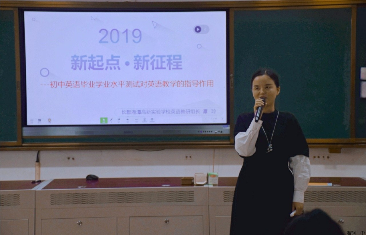 然后,来自长郡高新学校的谭玲老师做了题为《新起点,新征途——测试对教学的启示》的专题报告。报告从学业水平测试的性质、命题依据以及功能三个方面对学业水平测试进行了解析。最后,谭老师还为在座的老师们提出了关于听力、语法、语篇以及作文等四个方面教学的具体建议。