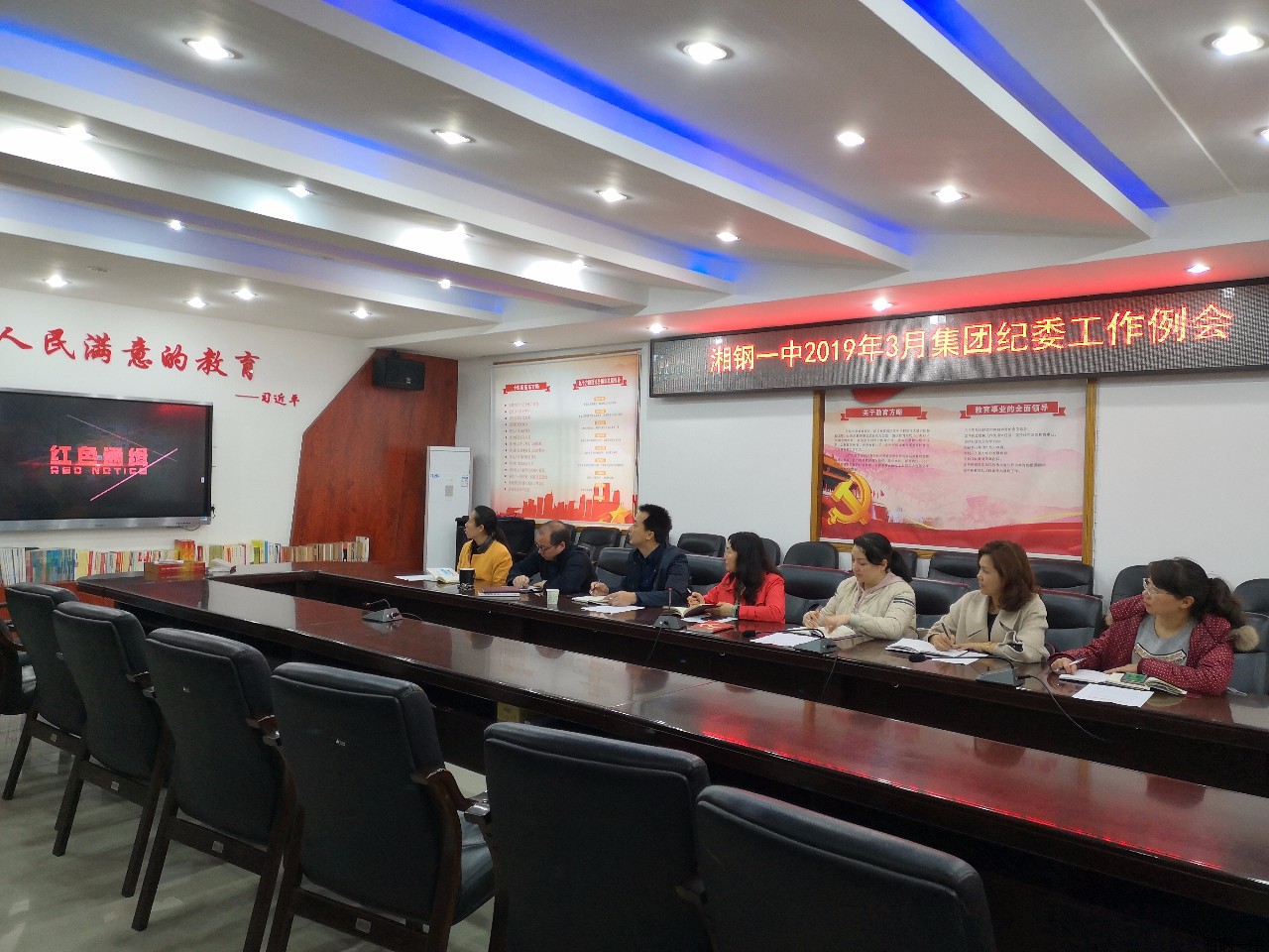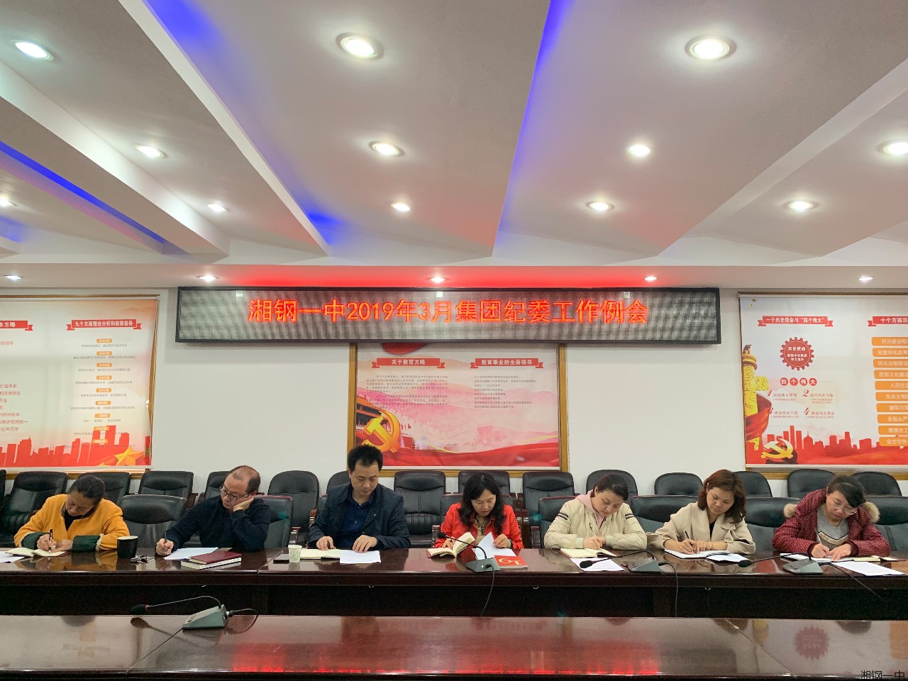 为认真贯彻落实中共中央纪委《关于纪检监察系统认真学习贯彻习近平总书记关于深化国家监察体制改革重要讲话的通知》(中纪发【2019】3号)精神,我校纪律检查委员会于2019年3月28日上午在南楼会议室召开湘钢一中教育集团2019年上学期第二次会议,与会人员有纪委书记周炜、纪检委员谭小刚、江莉、张劲、文劲、彭小焱,纪委干事王丽萍,会议由周炜书记主持。
