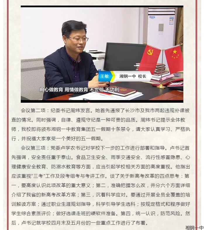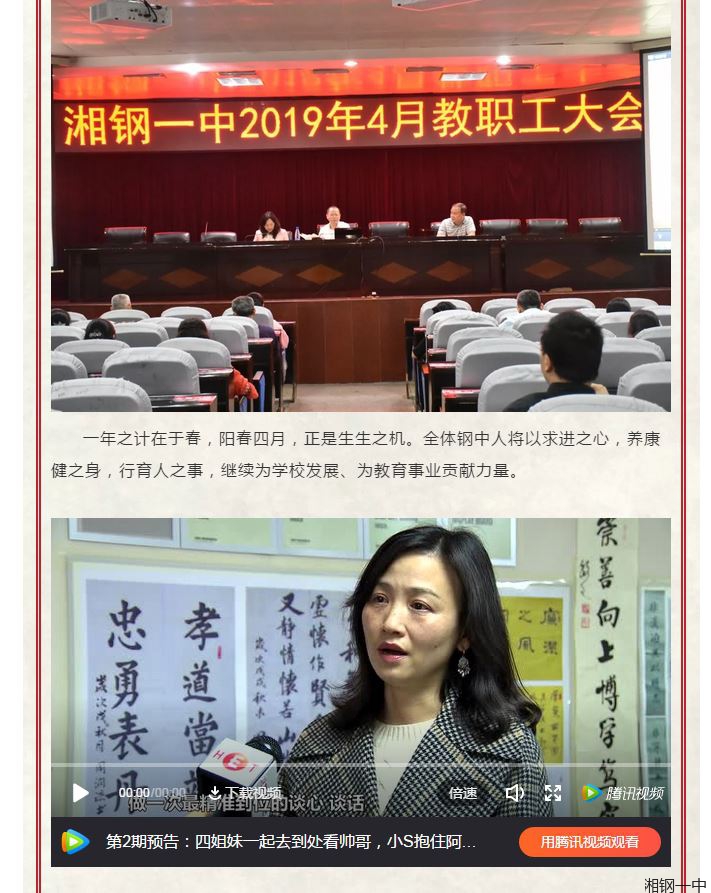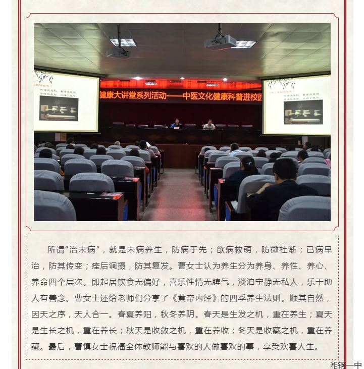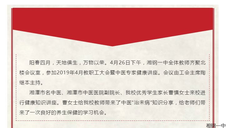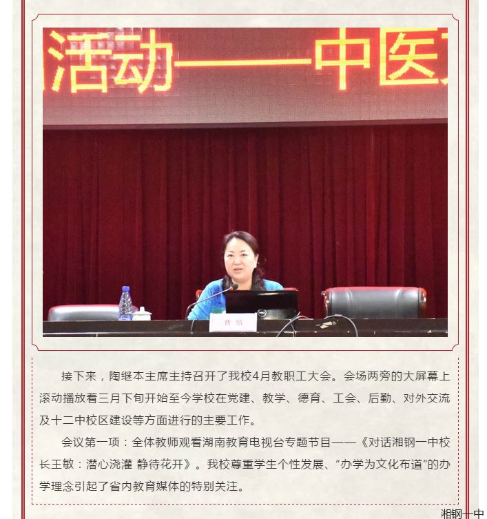 生生之机 协手前行 ——湘钢一中召开2019年4月教职工大会暨中医专家健康讲座