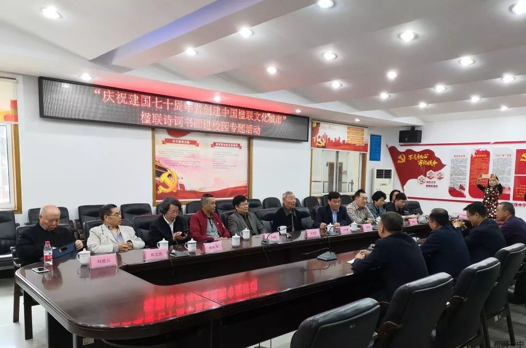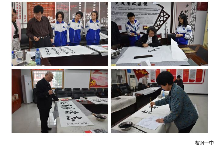 缤纷校园,笔墨传神。楹联文化和中国书画是中国特有的一种传统艺术,它不仅是中华民族的文化瑰宝,而且也在世界文化艺术宝库中独放异彩。本次活动作为湘钢一中校园文化建设的一部分,为广大师生创造了与名家大师零距离交流学习的机会。我们将更加紧密地团结在以习近平总书记为核心的党中央大旗的周围,不忘教育初心,牢记教育使命。继续朝着“承三湘人文,办一流名校”,“学习乐园、书香校园和精神家园”这方教育精神高地奋力前行。