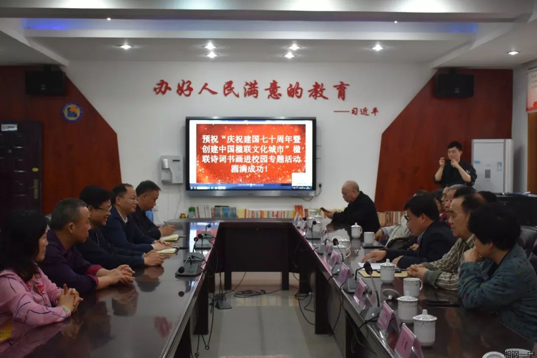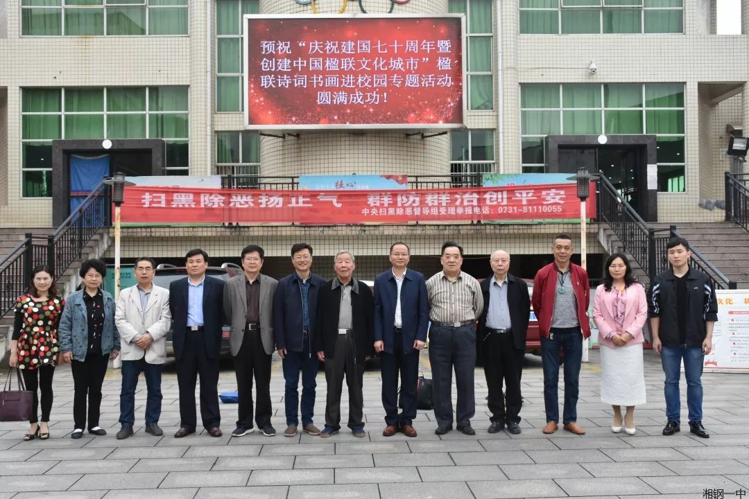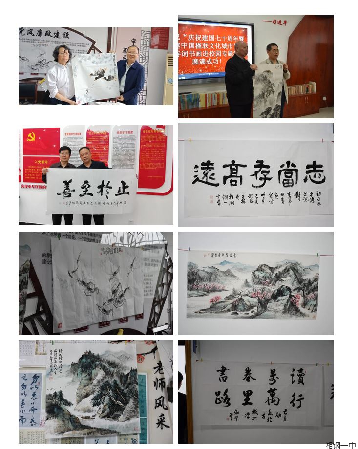 楹联诗画进校园,翰墨飘香润心田。5月16日上午,湘钢一中、湘潭市楹联家协会携手举办了“庆祝建国七十周年暨创建中国楹联文化城市”楹联诗词书画进校园公益活动,湘潭市12位省内著名书画艺术家走进湘钢一中校园,为钢中师生传经送宝。