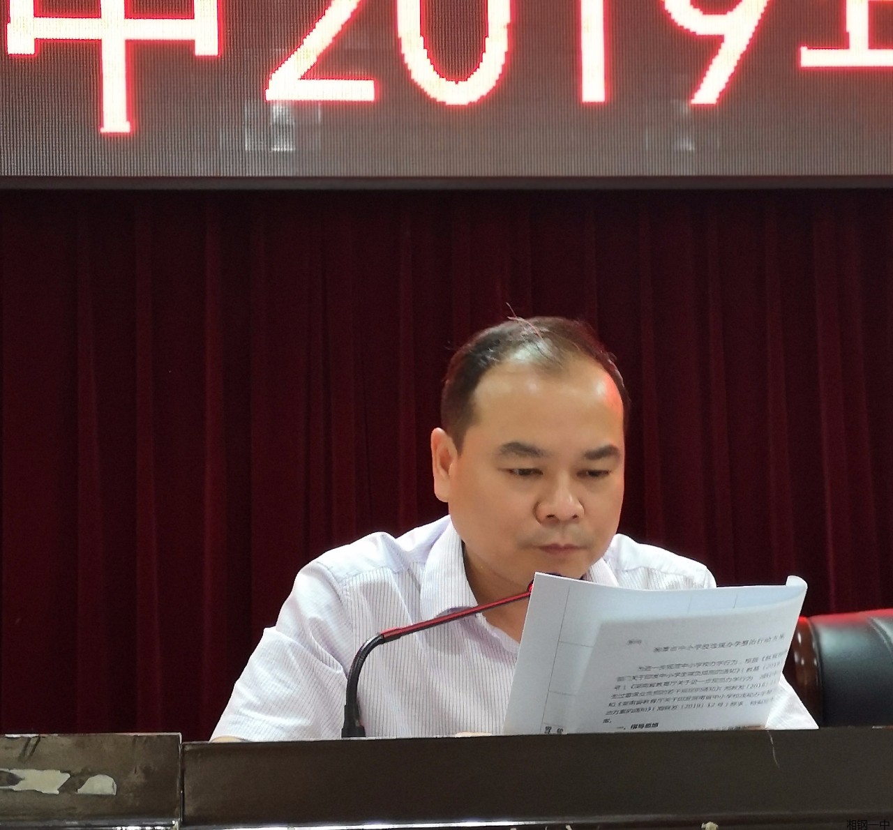 首先,教学副校长刘洁冰传达了两份重要文件:《关于开展违规办学整治行动专项督查的通知》(湖南省教育厅印发)、《湘潭市中小学校违规办学整治行动方案》(湘潭市教育局印发),刘校长希望大家要认清目前形势,转变观念,守好课堂主阵地,打造高效课堂。