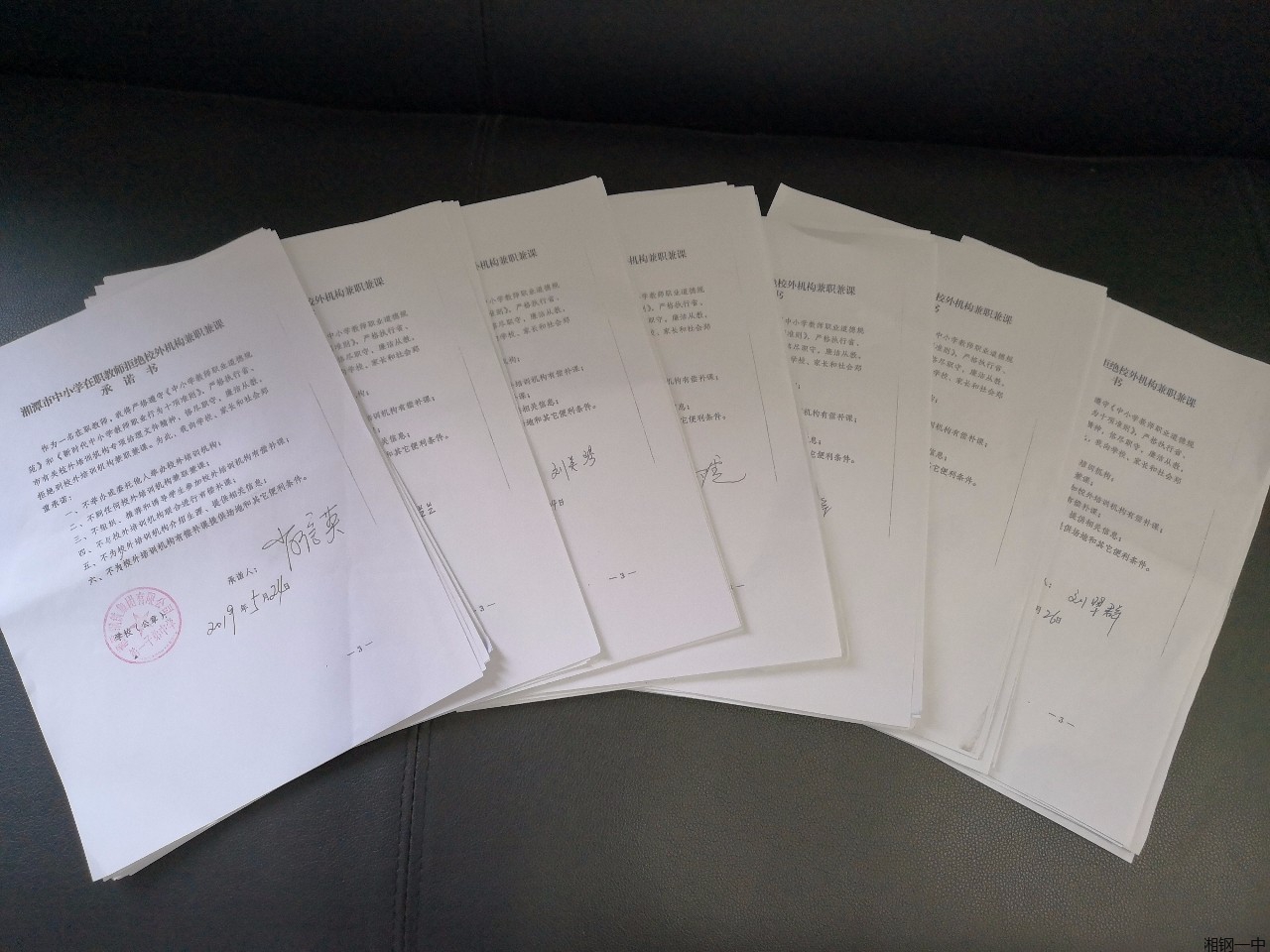 接着,纪委书记周炜宣读了《湘潭市教育局关于严禁在职中小学教师到校外培训机构兼职兼课等事项的通知》,要求全体教师认真学习并签订《湘潭市中小学在职教师拒绝校外机构兼职兼课承诺书》。警醒大家严守纪律底线,不做糊涂事。