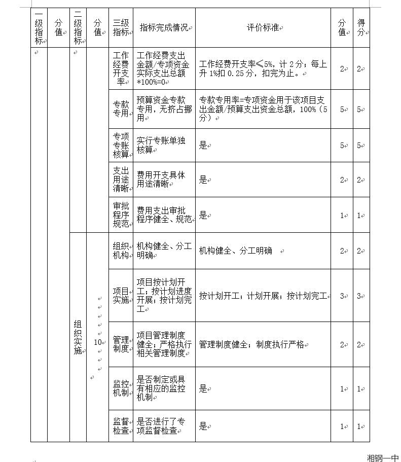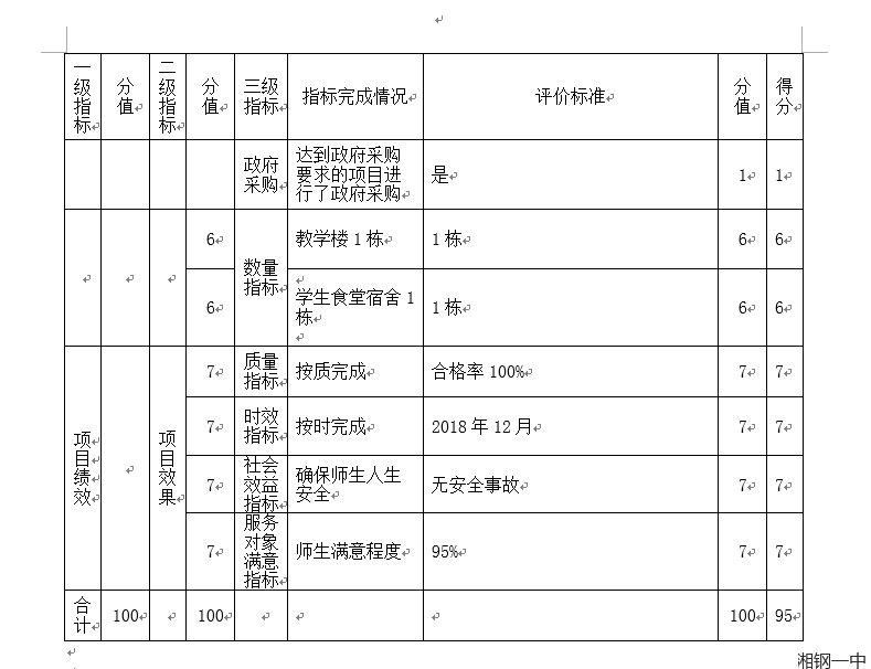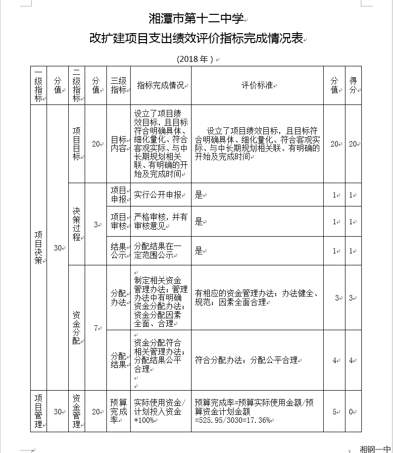 湘潭市十二中改扩建项目支出绩效评价指标完成情况表