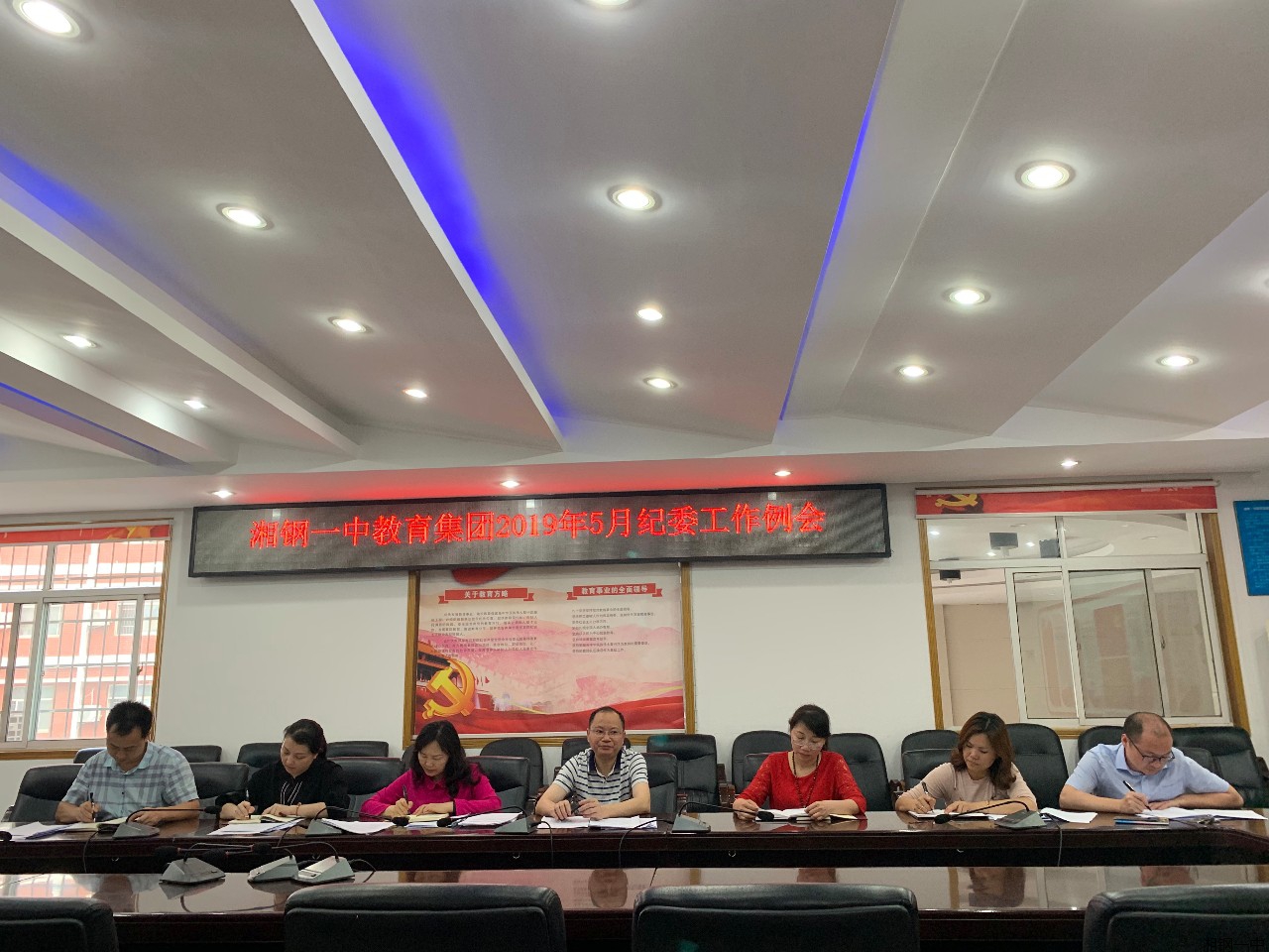 5月28日,湘钢一中教育集团纪律委员会在南楼会议室召开2019年5月工作例会。参加会议的有集团党委书记卢学农同志及集团纪检委员,会议由纪委书记周炜同志主持。