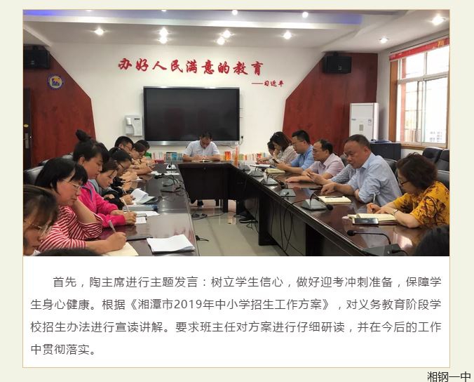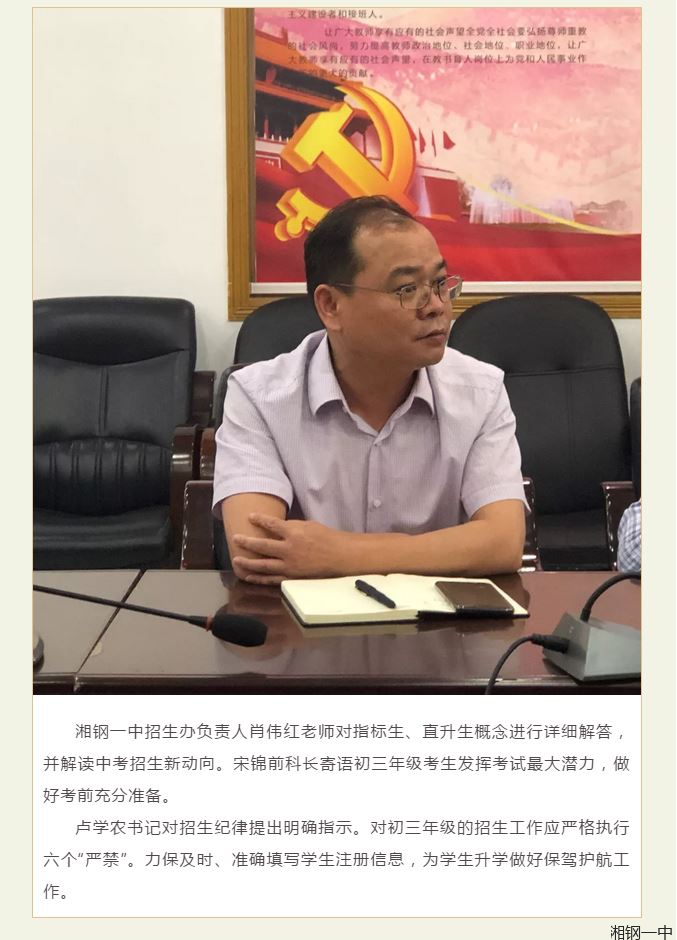 点睛椽笔,细择破壁翥蛟龙 ——记湘钢一中2019年初三年级招生工作专题会议
