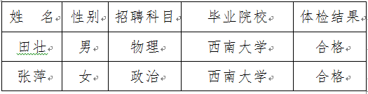 湘钢一中教育集团招聘教育部直属师范大学公费师范生体检工作已结束,现将体检结果(