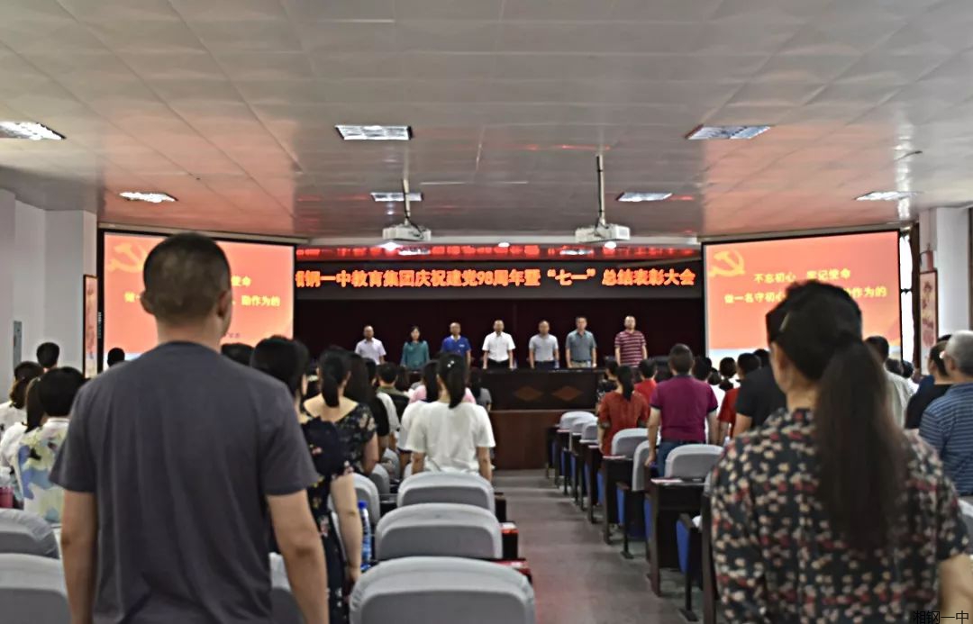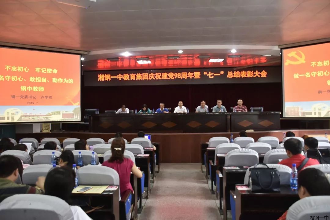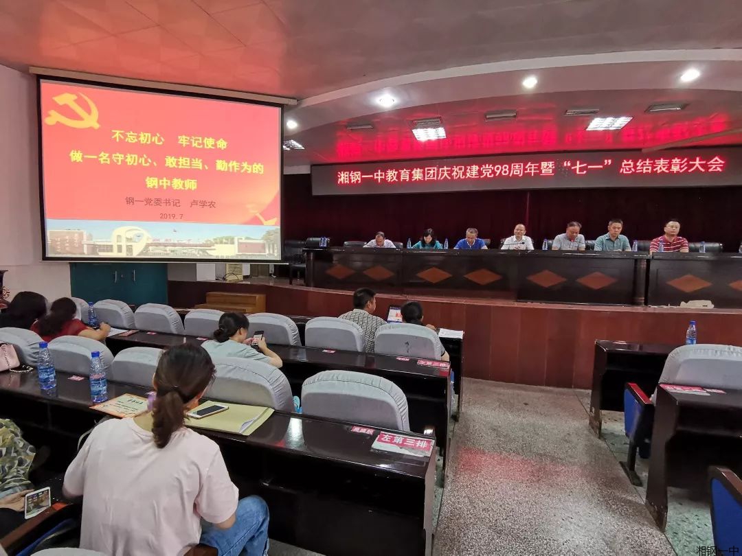 七月如火,七月如歌。7月2日下午,中共湘钢一中教育集团委员会在北楼会议室隆重举行“不忘初心,牢记使命”主题教育暨庆祝建党98周年“七一”表彰大会。集团班子成员、全体党员、退休支部代表等参加大会,会议由集团党委宣传委员、工会主席陶继本主持。