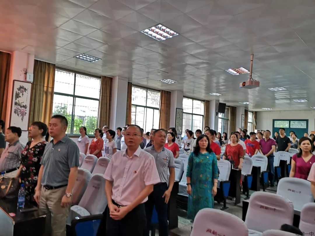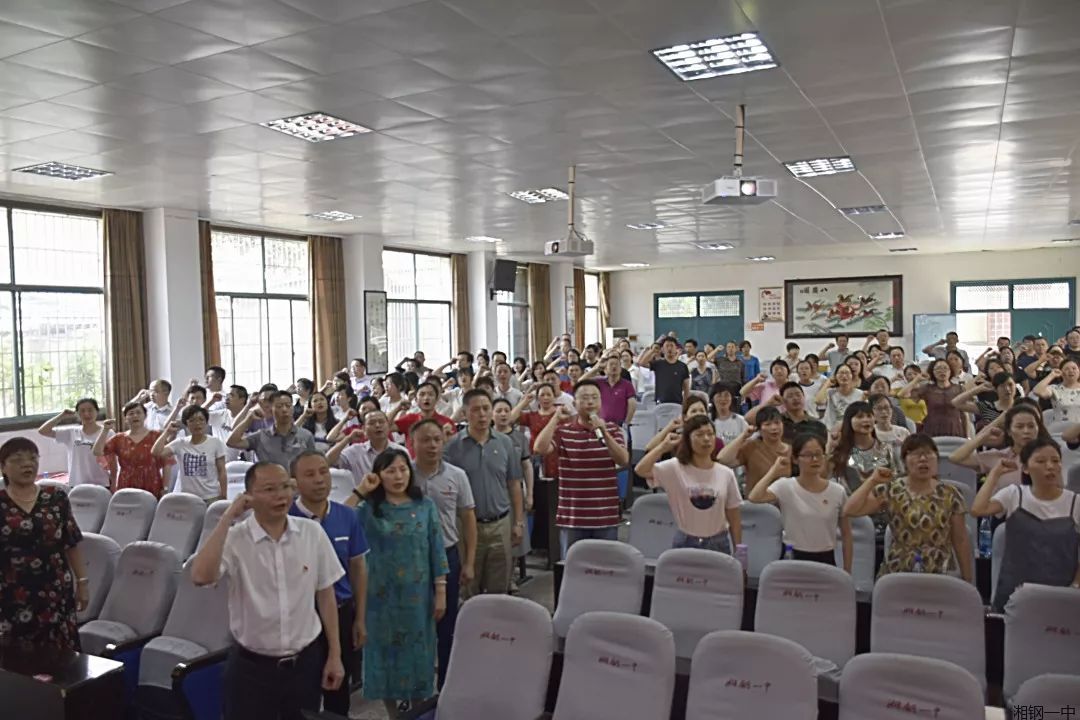 会议在雄壮的国歌声中拉开序幕。“我志愿加入中国共产党……”,嘹亮的宣誓声响彻会议室,全体党员同志在党委委员、德育副校长王锦兵的带领下庄严宣誓。