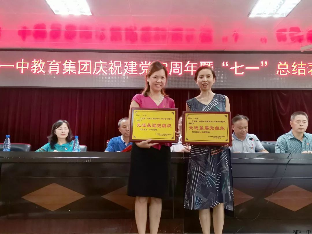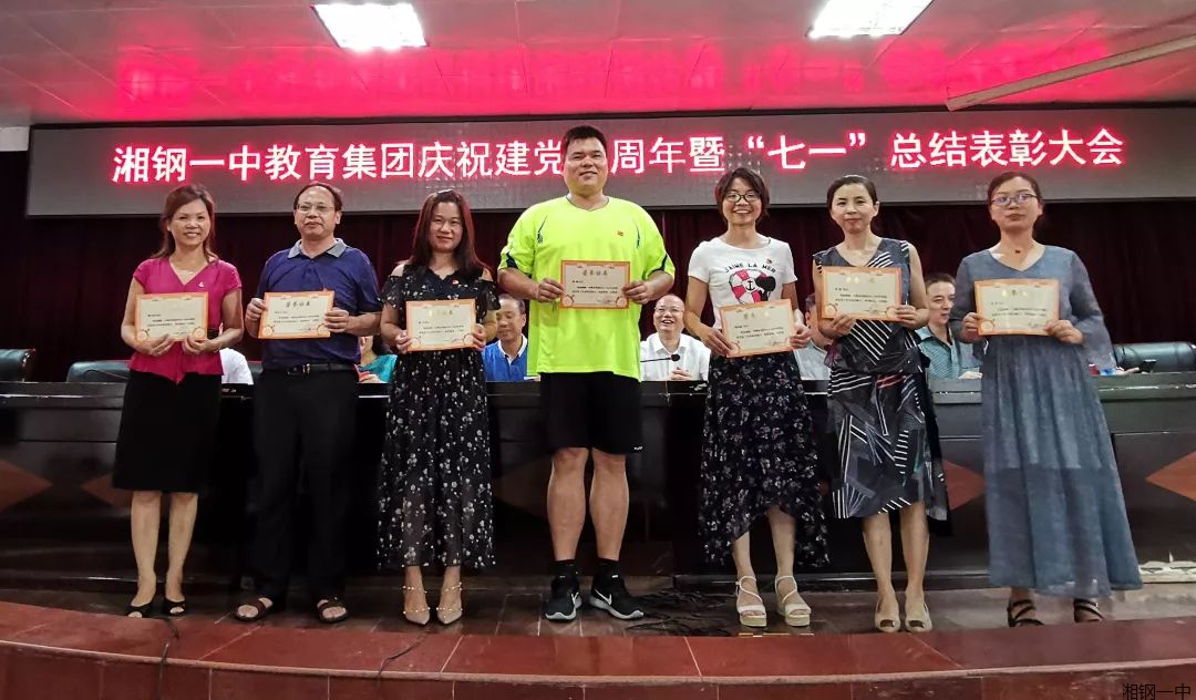 重温入党誓词完毕,集团党委委员、十二中校区党总支书记向文华宣读《中共湘钢一中教育集团委员会关于表彰集团2018-2019学年度先进基层党组织、优秀共产党员和优秀党务工作者的决定》。此次表彰,综合一支部、初中二支部获评先进基层党组织,38名党员同志获评优秀共产党员,8名党员同志获评优秀党务工作者。获奖的先进支部与个人先后登台领奖。