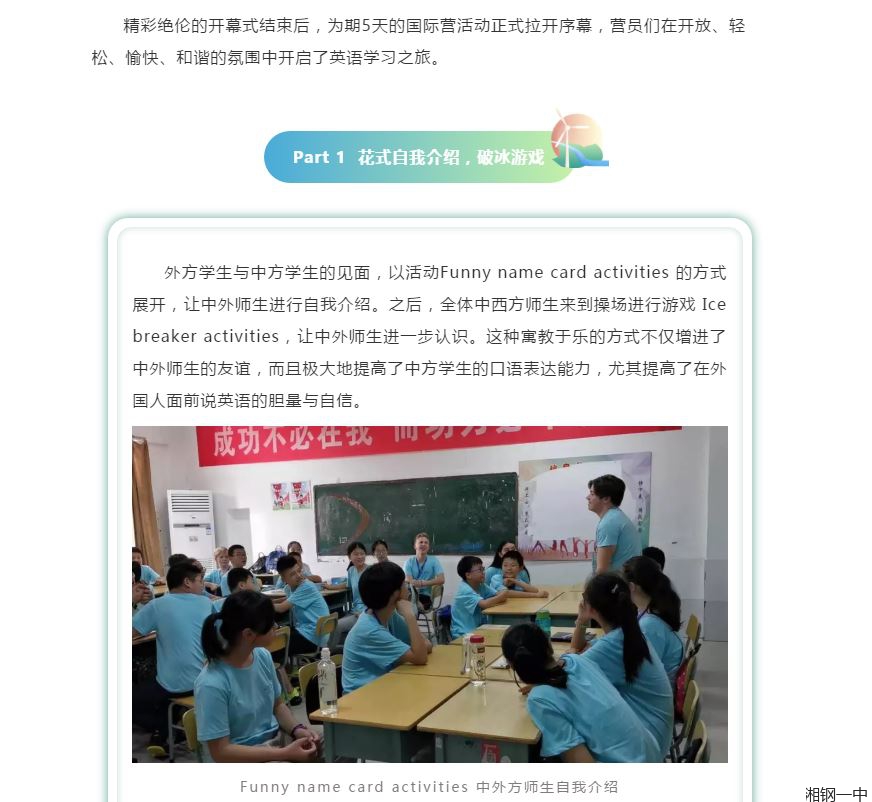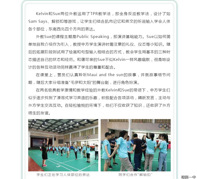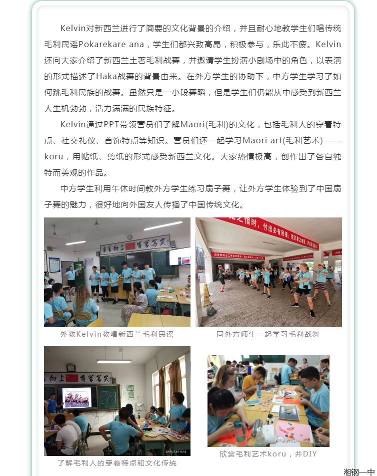情牵中西,清凉一夏 ——环球青少年大使计划中国国际营第三届湘钢一中营活动集锦