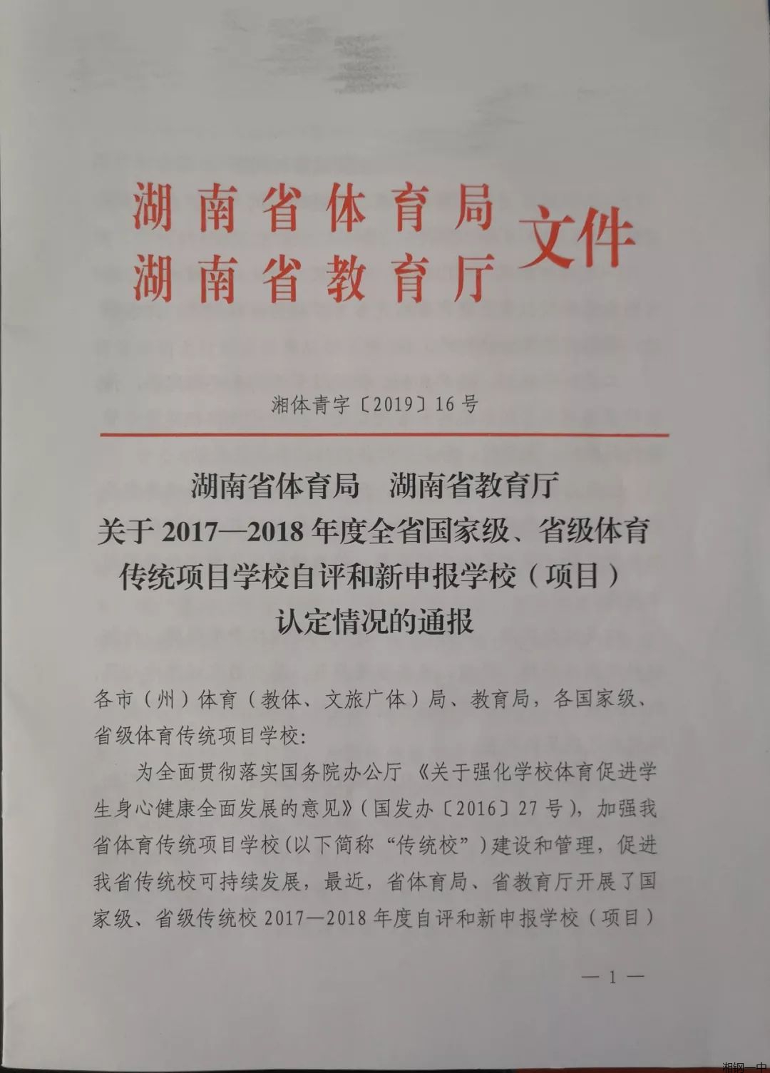 “2017—2018年度湖南省体育传统项目学校优秀单位”