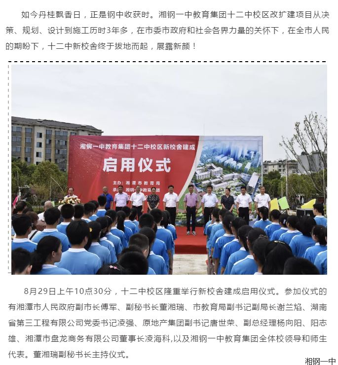 勇立潮头风流盛 扬帆起航正当时——记湘钢一中教育集团十二中校区新校舍建成启用仪式